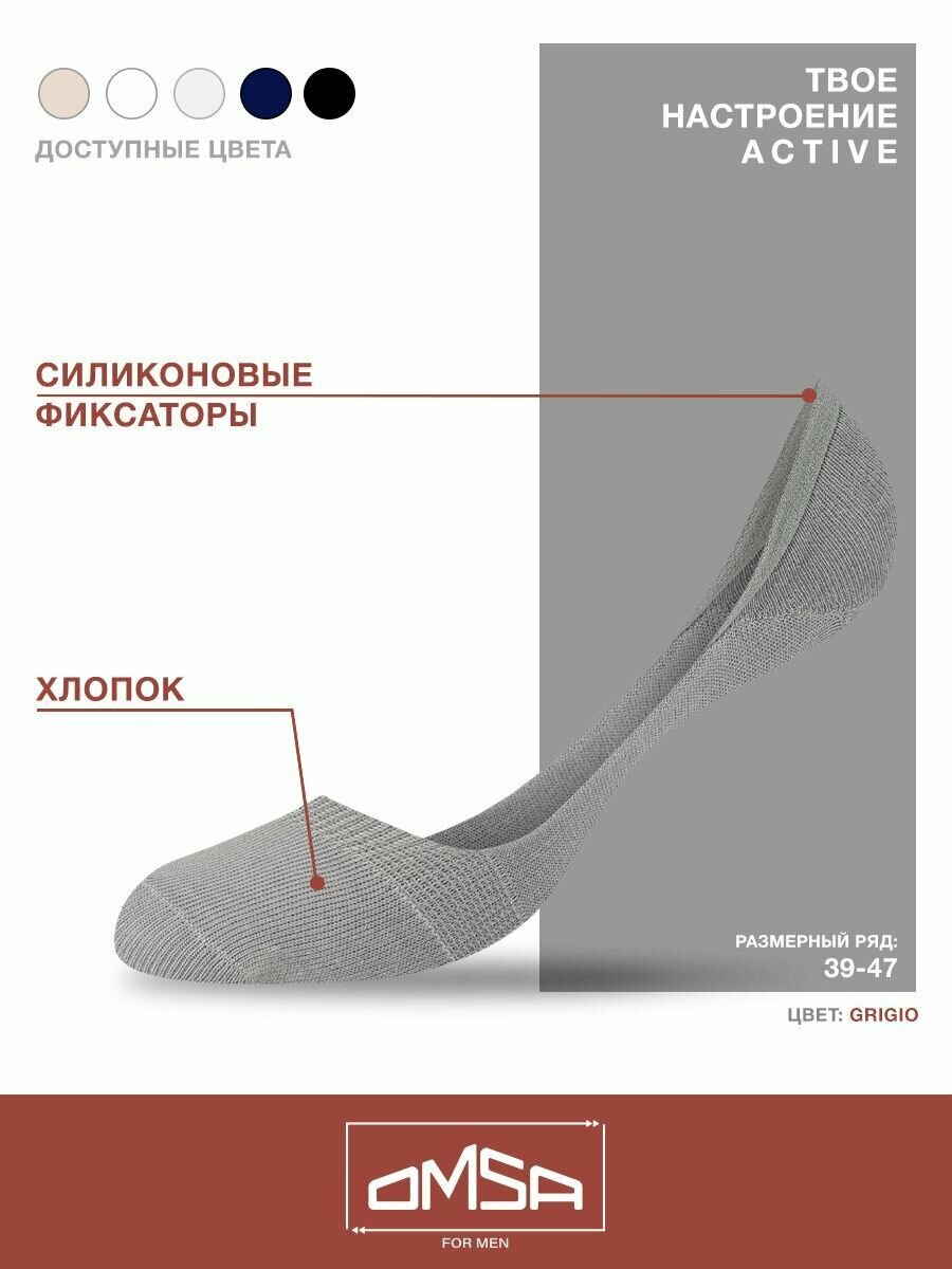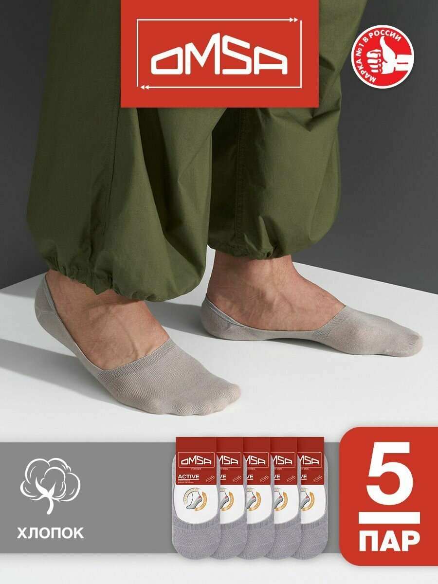 Носки мужские OMSA ACTIVE 101 хлопок (подследники) Grigio 42-44. Комплект 5 шт