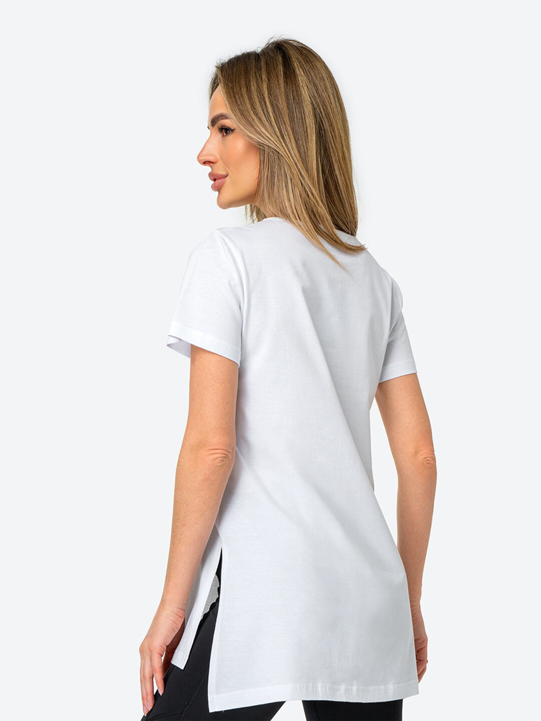 Футболка женская длинная однотонная трикотажная с разрезами HappyFox, HFG2010 белый 46