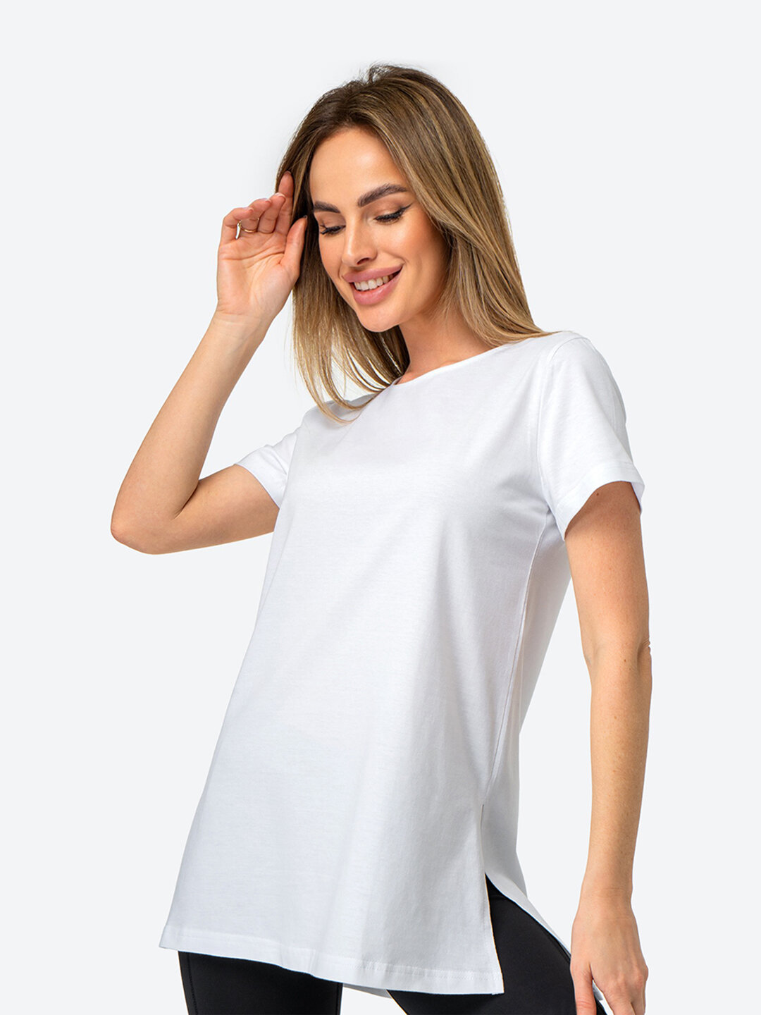Купить Футболка женская длинная однотонная трикотажная с разрезами HappyFox, HFG2010 белый 52