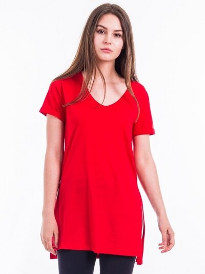 Футболка женская длинная однотонная трикотажная с разрезами HappyFox, HFG2010 размер 44, цвет красный