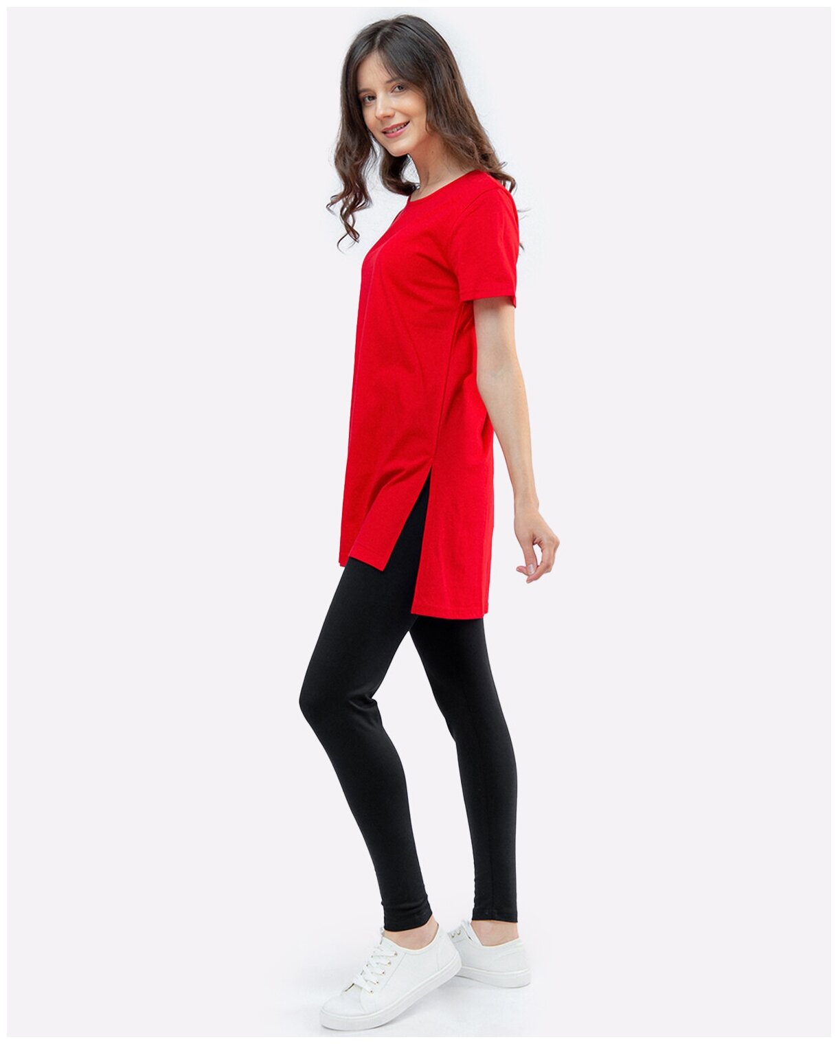 Футболка женская длинная однотонная трикотажная с разрезами HappyFox, HFG2010 размер 48, цвет красный