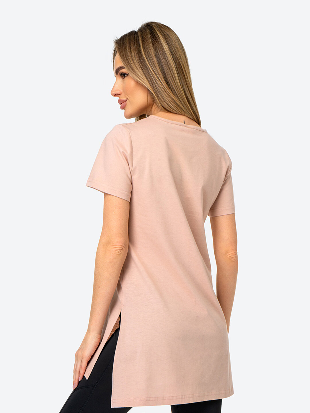 Футболка женская длинная однотонная трикотажная с разрезами HappyFox, HFG2010 размер 44, цвет бежевый