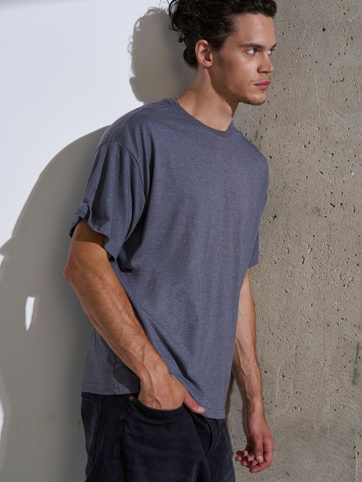 Футболка оверсайз хлопок Uzcotton однотонная базовая свободная плотная МеланжГрафит44-46\S