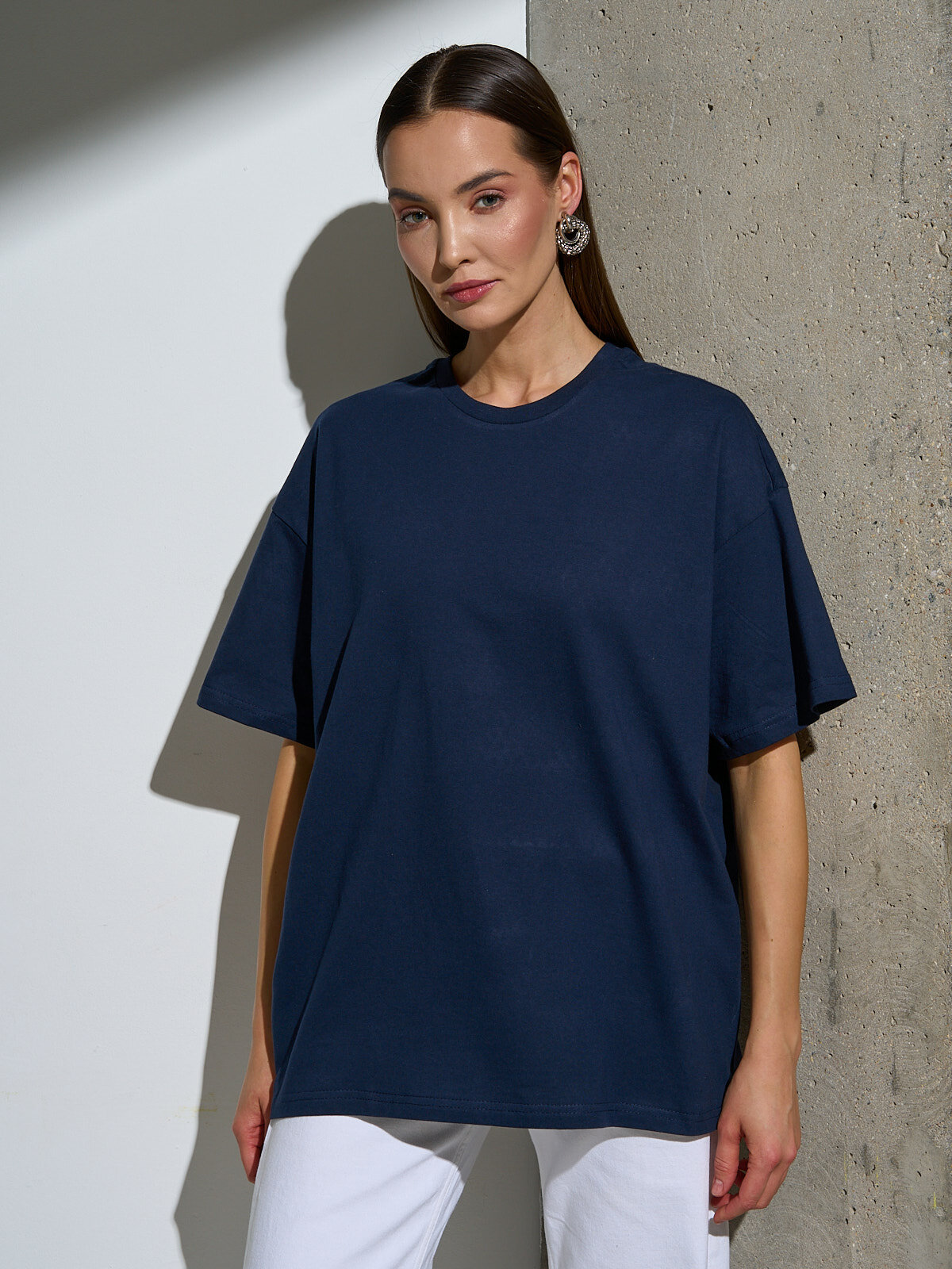 Футболка оверсайз хлопок Uzcotton однотонная базовая свободная плотная Т.Синий44-46\S