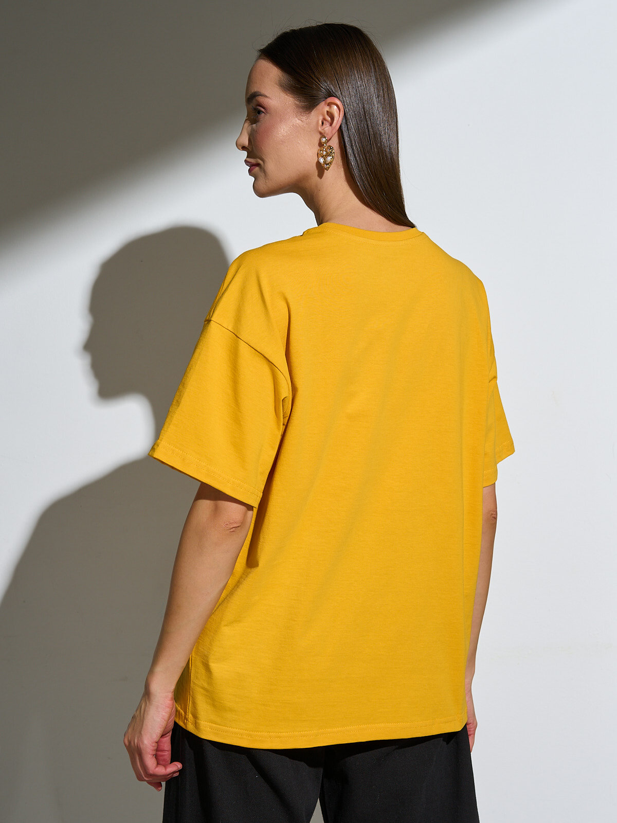 Футболка оверсайз хлопок Uzcotton однотонная базовая свободная плотная Желтый44-46\S