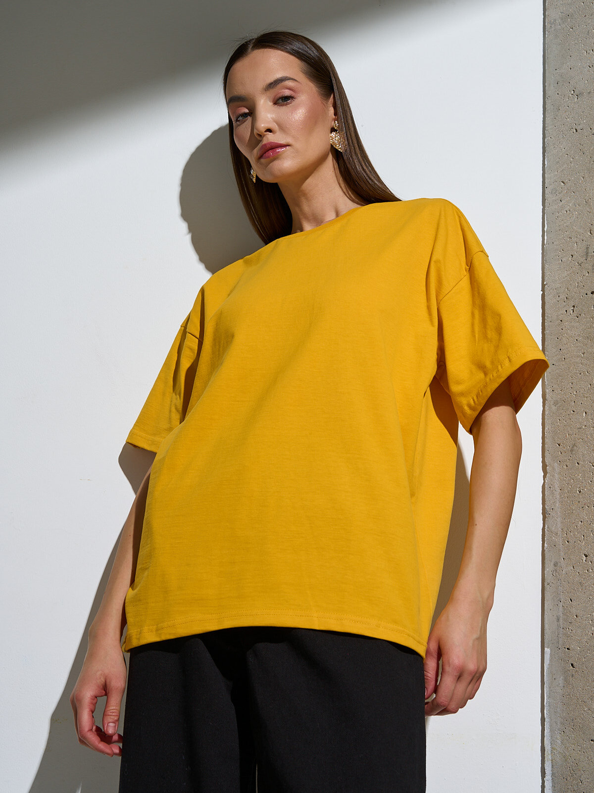 Футболка оверсайз хлопок Uzcotton однотонная базовая свободная плотная Горчица44-46\S