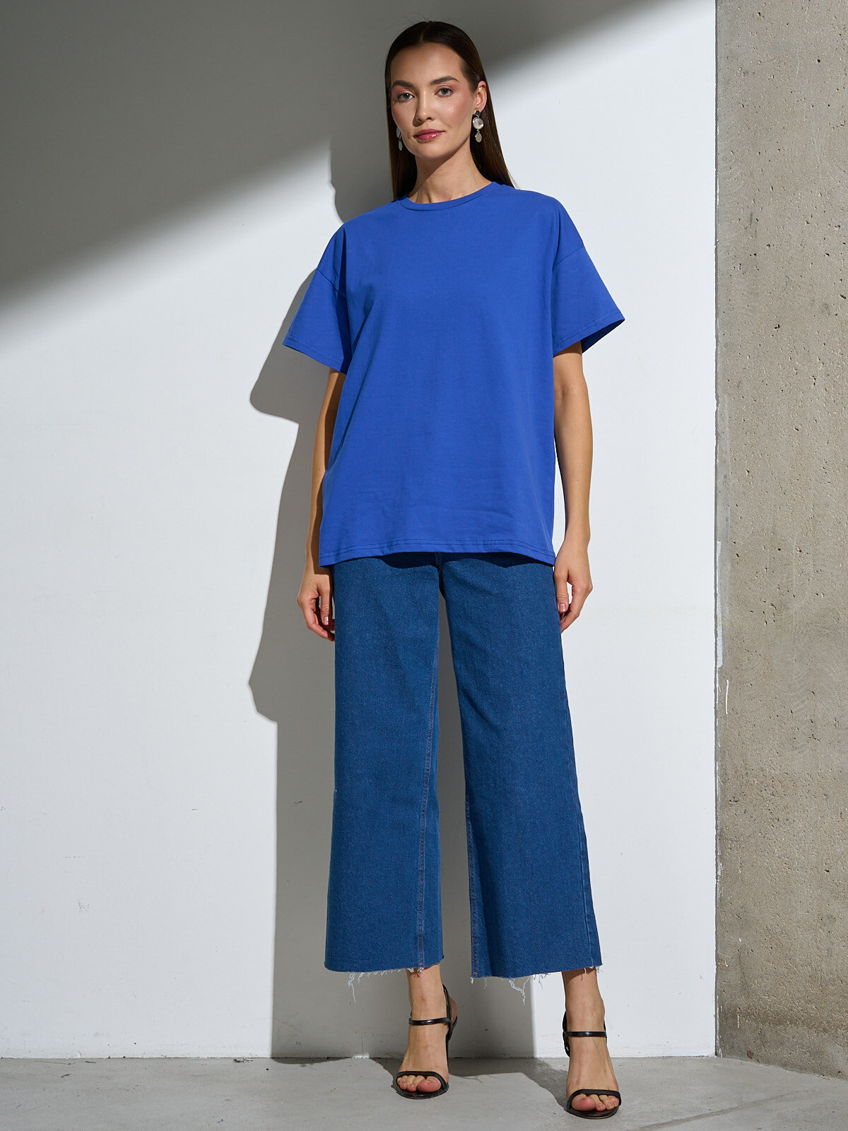 Купить Футболка оверсайз хлопок Uzcotton однотонная базовая свободная плотная Синий46-48\M