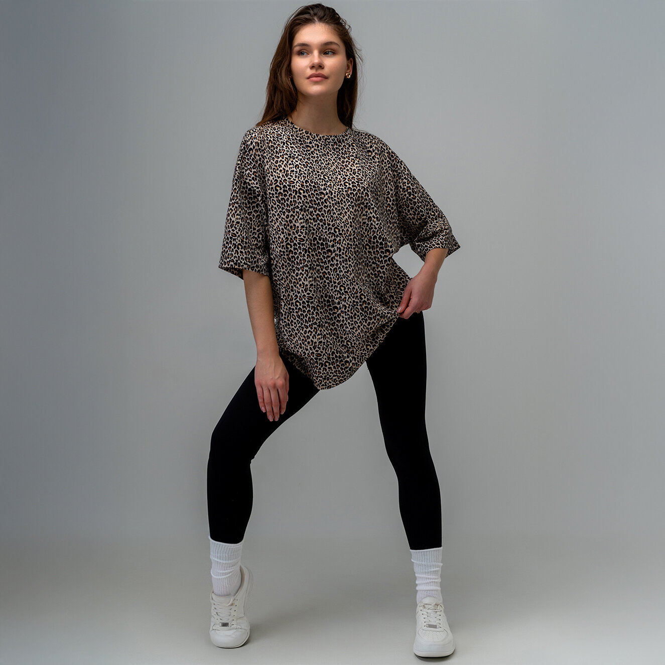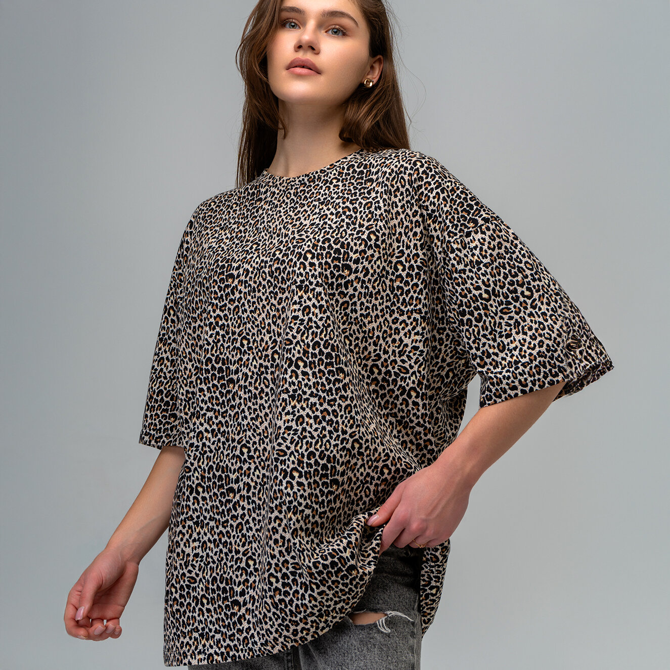 Футболка женская оверсайз с принтом леопард HappyFox HF096SP леопард.бежевый 44-46