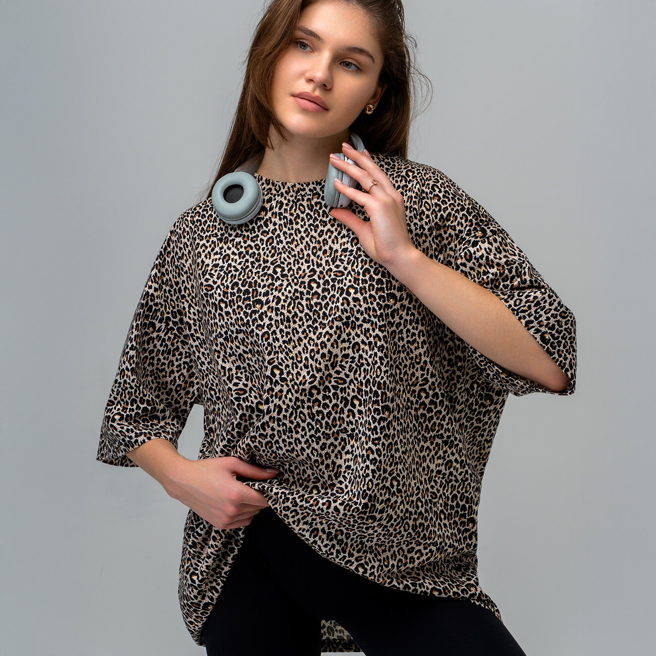 Футболка женская оверсайз с принтом леопард HappyFox HF096SP леопард.бежевый 48-50