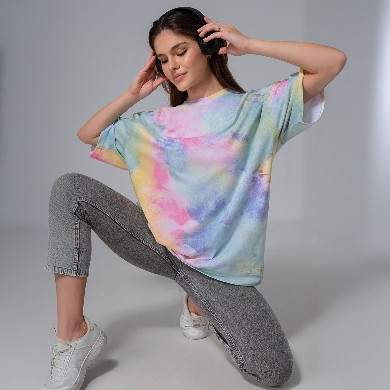 Футболка женская оверсайз с принтом унисекс хлопок, HappyFox, HF096SPразмер 48-50, цвет дым.на.т.синем
