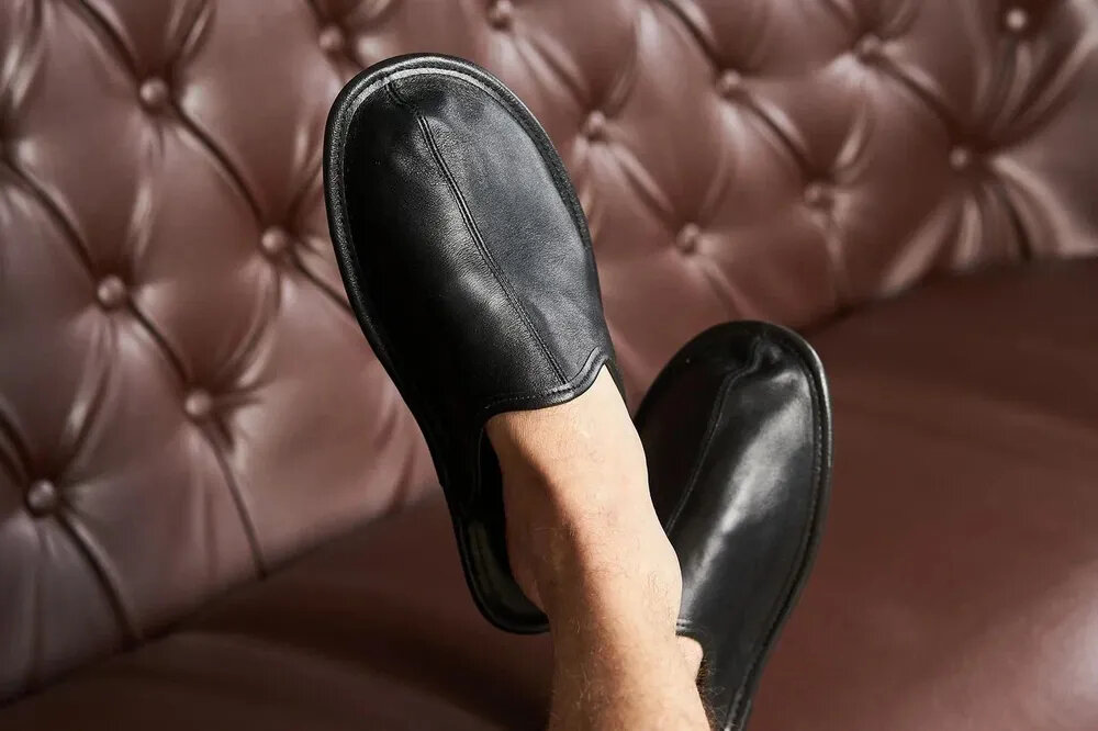 Тапочки домашние комнатные кожаные черные 41 интересное: