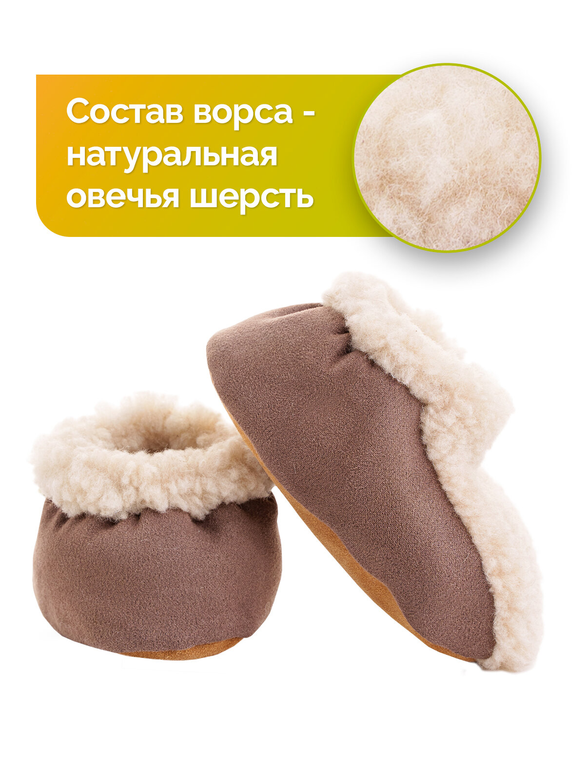 Тапочки детские Холти из шерсти, детские пинетки, (р. 21), коричневый