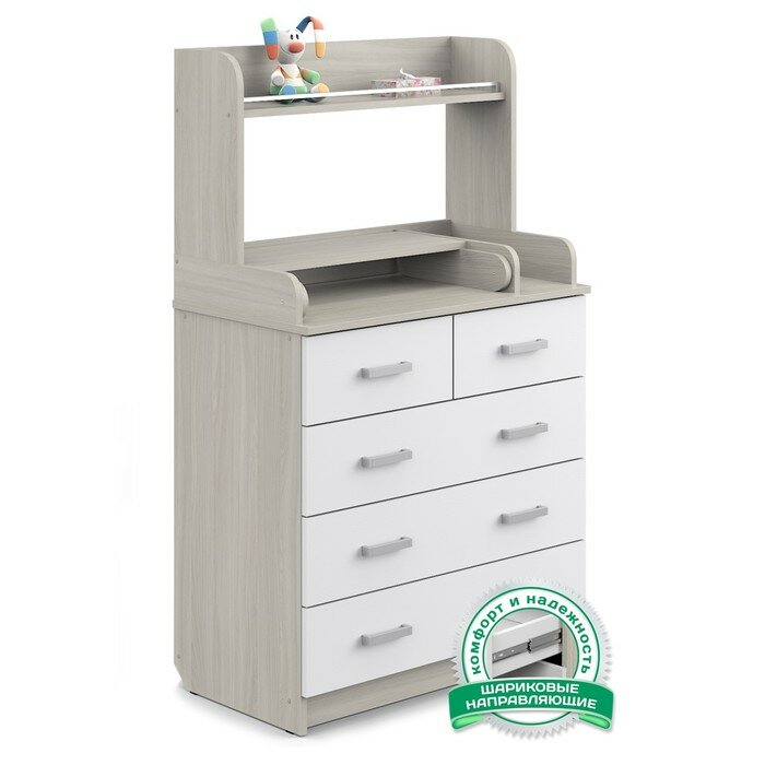 Комод детский с пеленальным столиком Сириус-2 полка 805 ЛДСП, ясень шимо светлый/белый 5 ящиков (2 места) интересное: