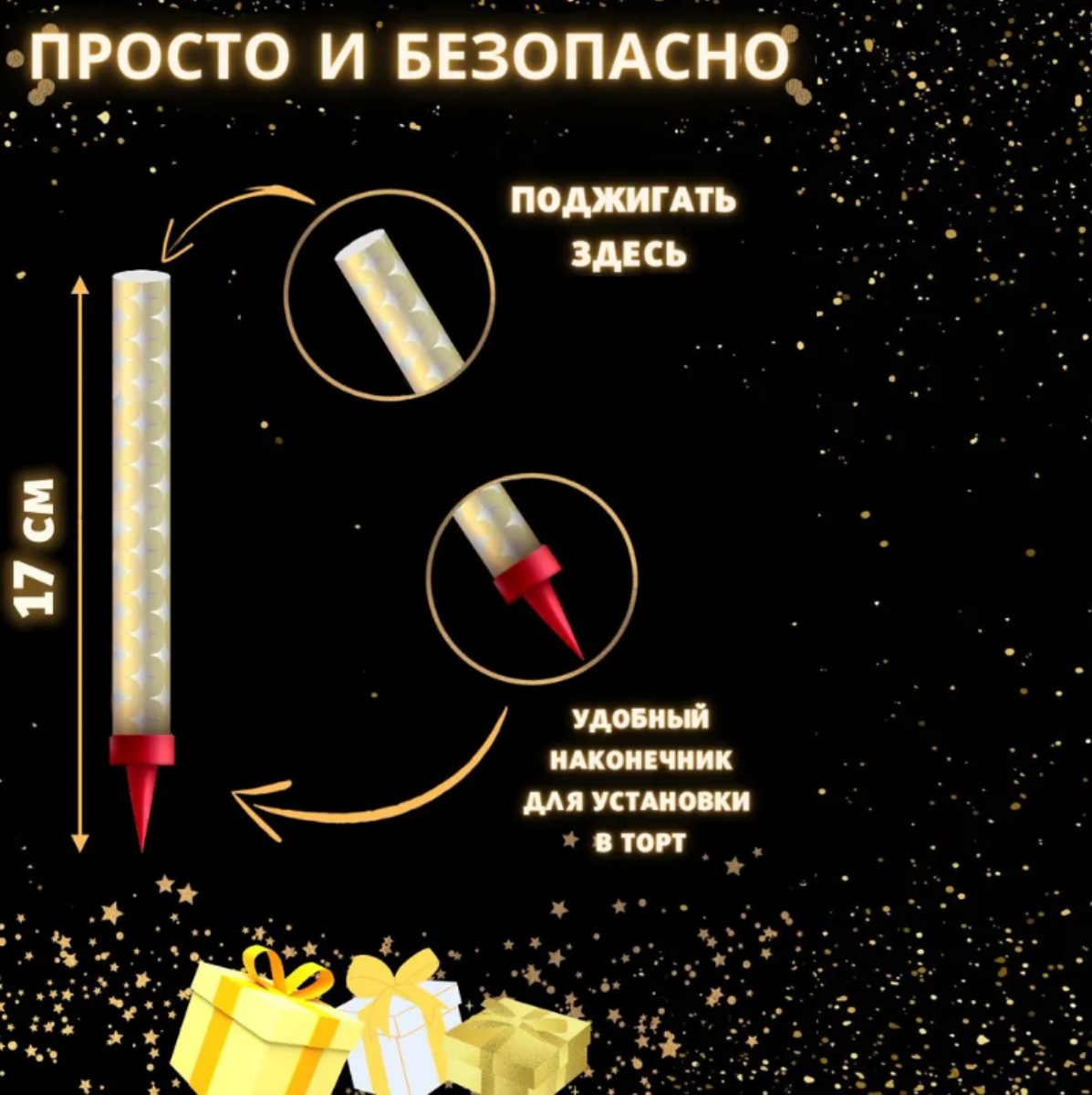 Свеча фонтан для торта бенгальская, 12см ,40 сек , 4 шт, Золотая интересное: