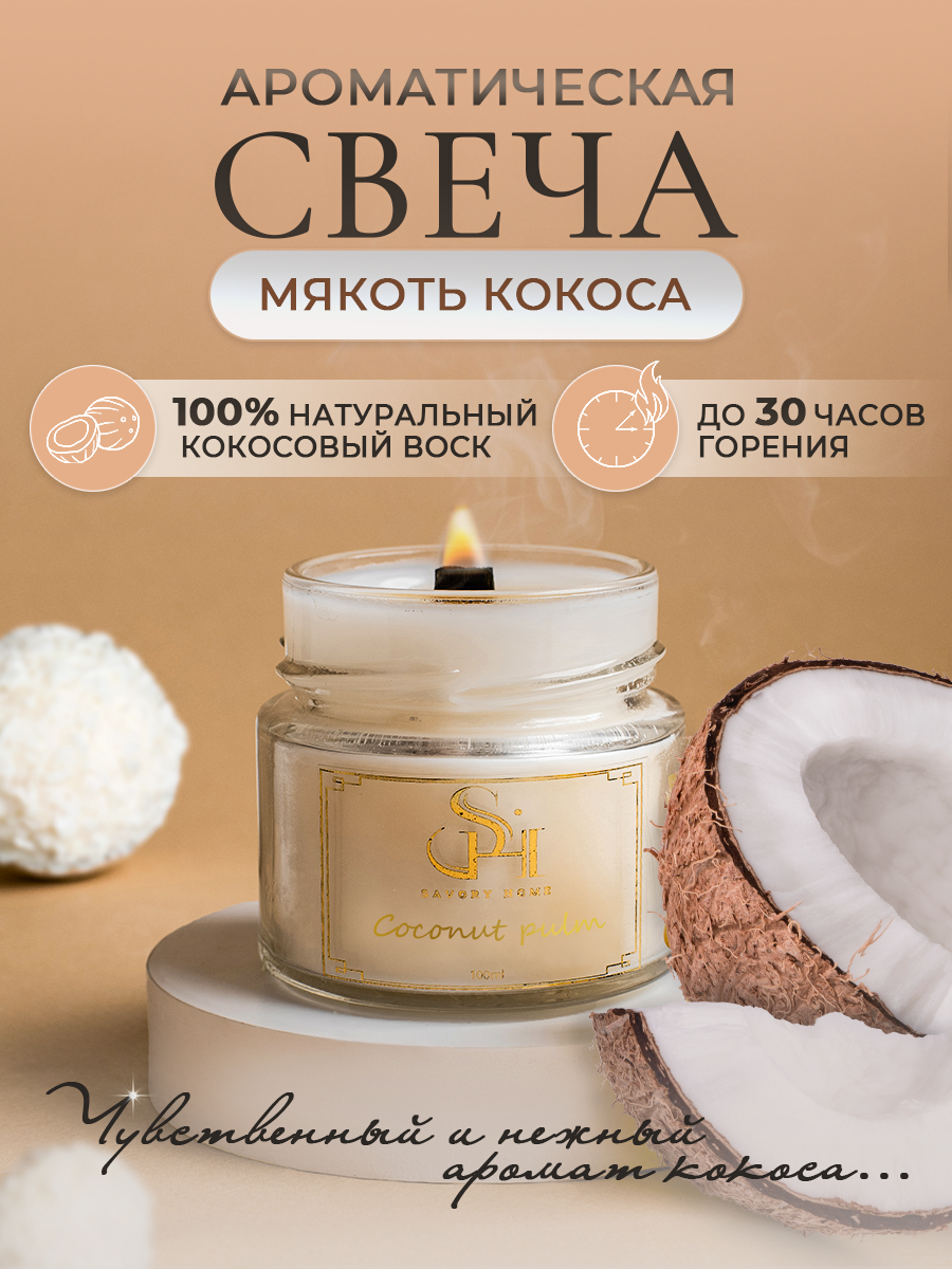 СохранитьСвеча ароматическая "Мякоть кокоса" 100мл, Savory Home интересное: