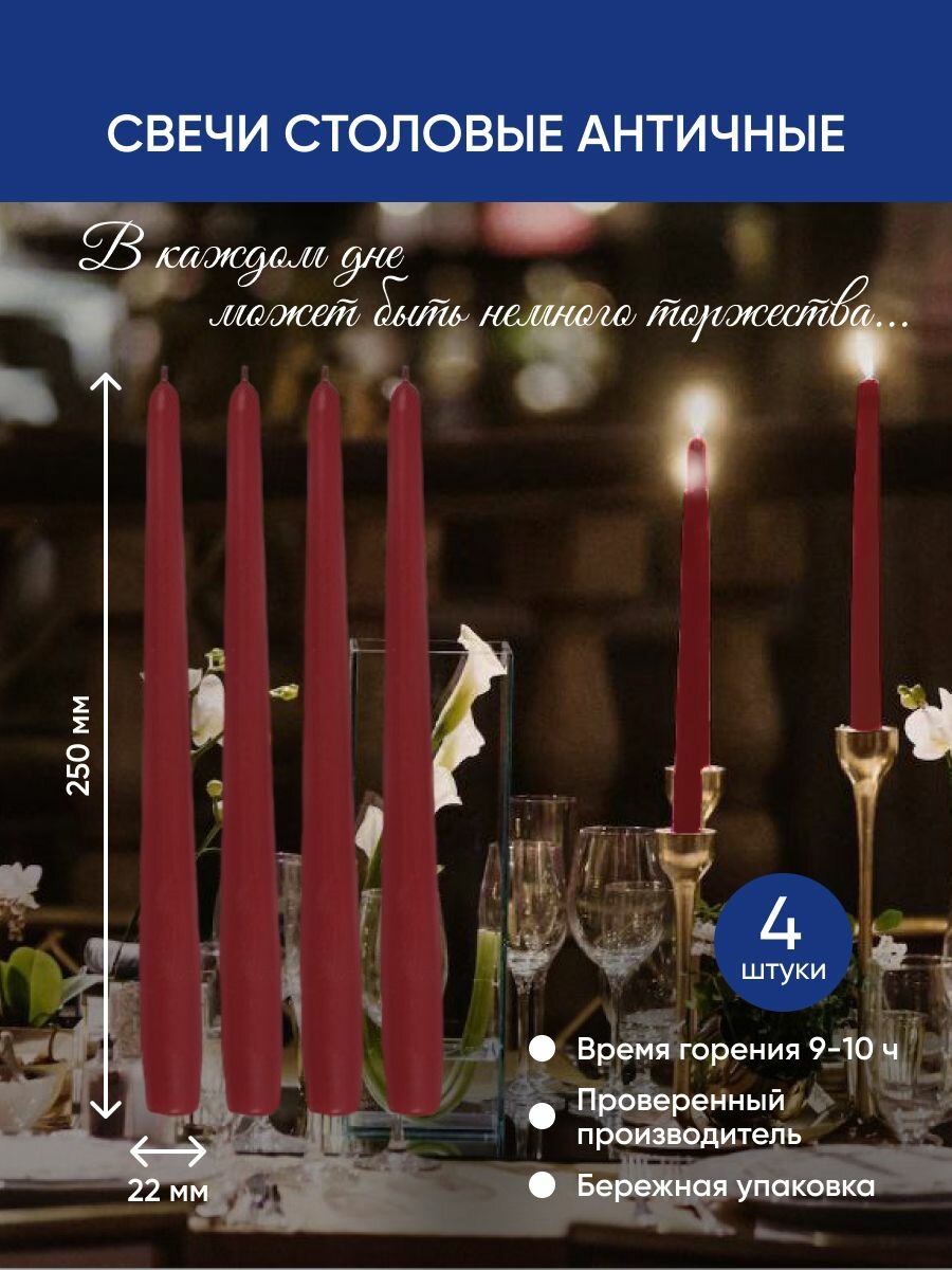 Свечи столовые античные бордовые, Набор 4 шт, высота 25 см интересное: