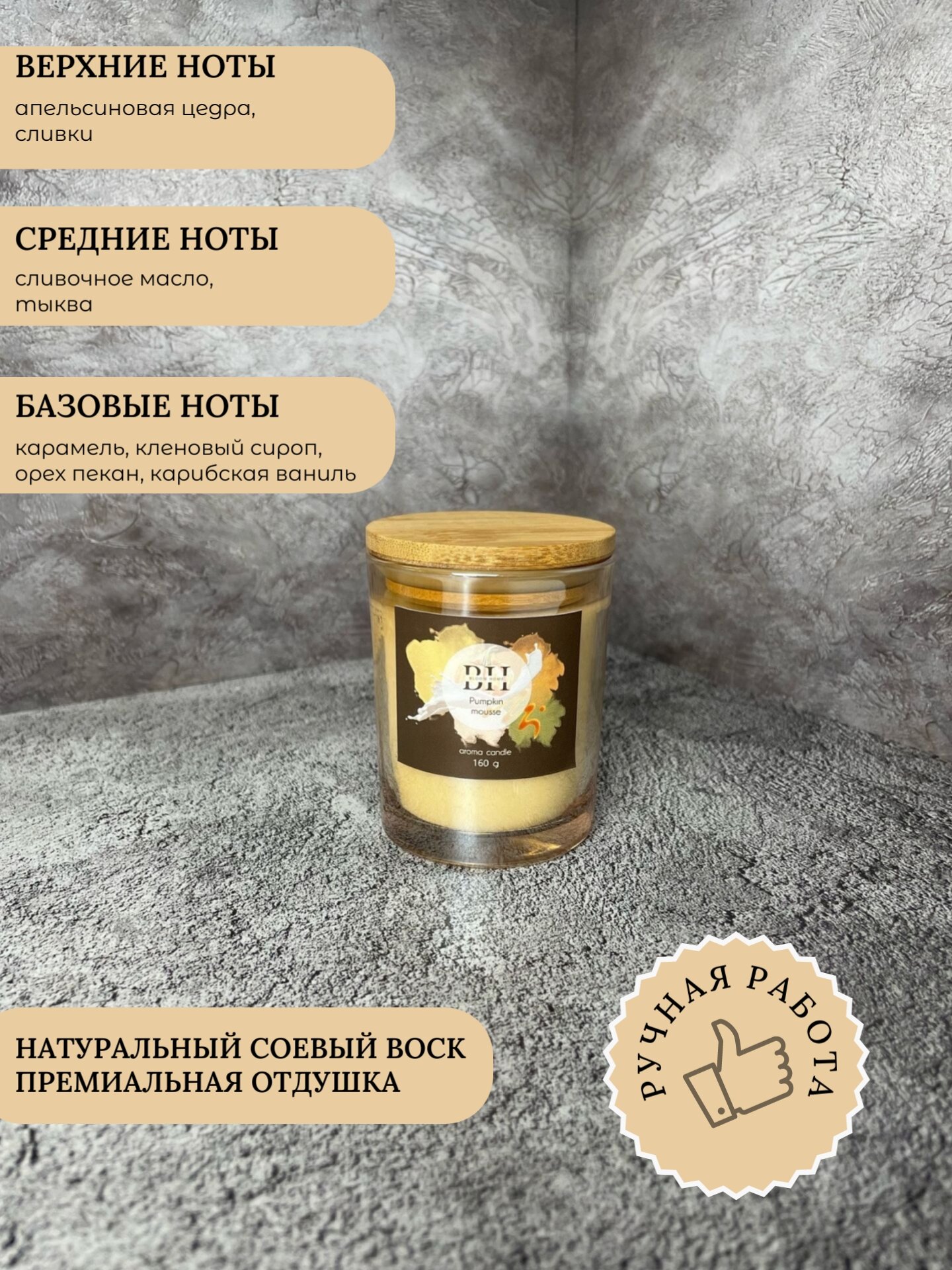 Арома свеча Pumpkin mousse (Тыквенный мусс) 160 гр, соевый воск, хлопковый фитиль интересное:
