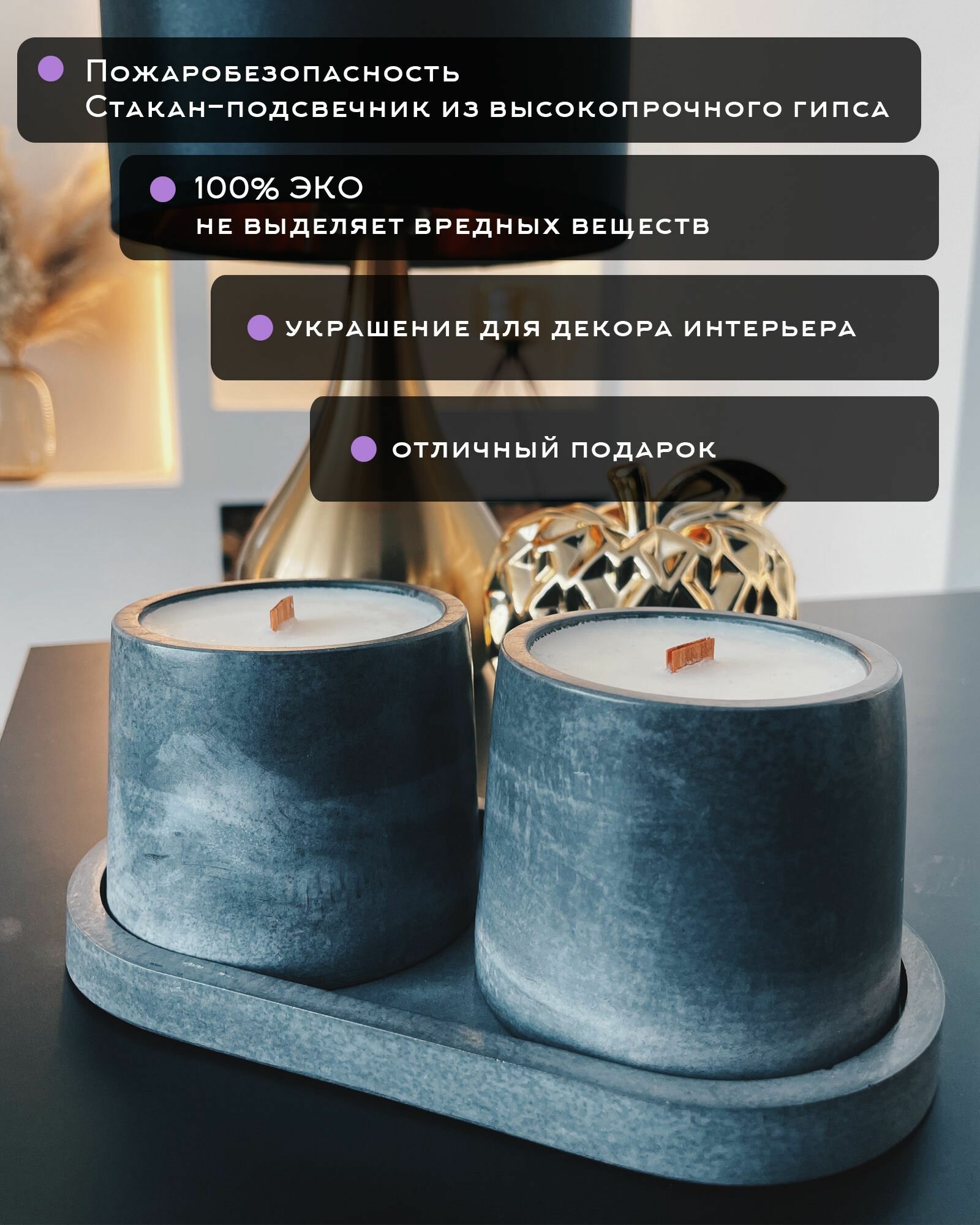 "Табак мускус ваниль" ART FRIDAY, Свечи ароматические, Свеча с деревянным фитилем, Набор свечей, Свеча декоративная, 60 часов горения, 2 шт. интересное:
