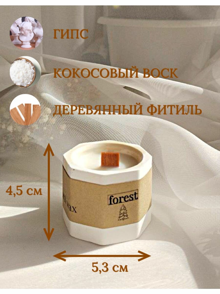 Свеча AROMALAND Хвойный Лес, с деревянным фитилём, в гипсовом подсвечнике, 50 мл