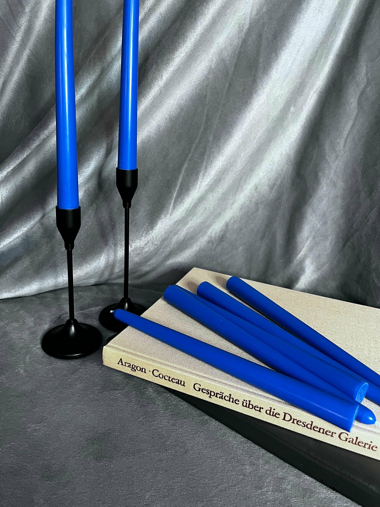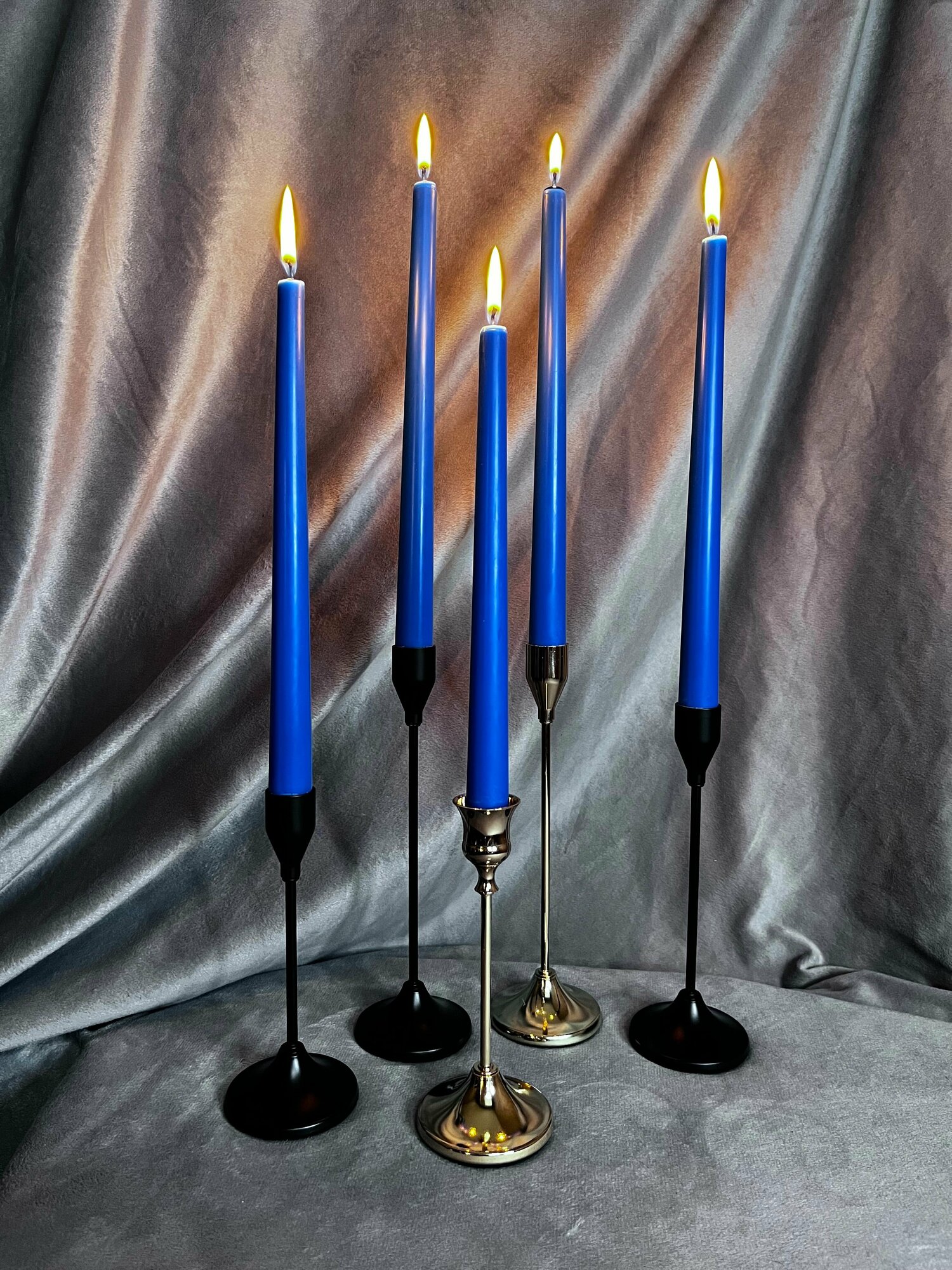 СохранитьНабор столовых конических свечей "Thursday" (25.5x2.2 см, 3 шт.) ручной работы. Декоративные свечи синего цвета. интересное: