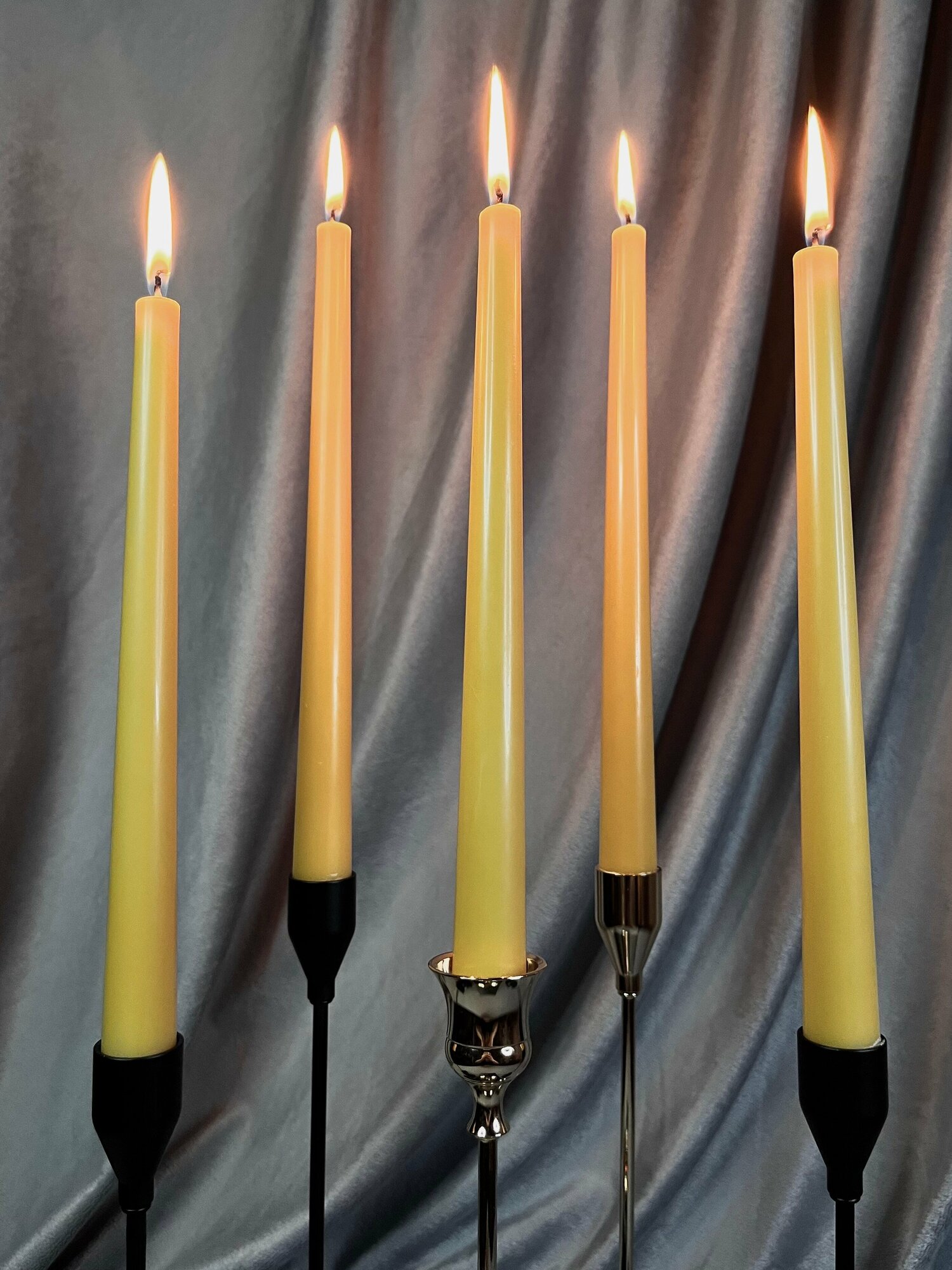СохранитьНабор конических свечей "Sunday" (25.5x2.2 см, 3 шт.) ручной работы. Декоративные свечи пастельного желто-оранжевого цвета. интересное: