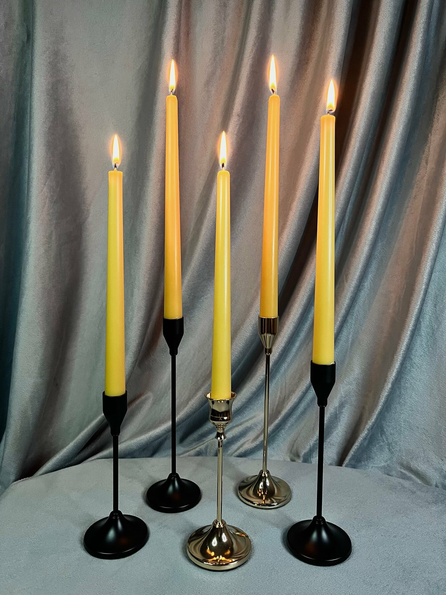 Набор конических свечей "Sunday" (25.5x2.2 см, 3 шт.) ручной работы. Декоративные свечи пастельного желтого цвета.