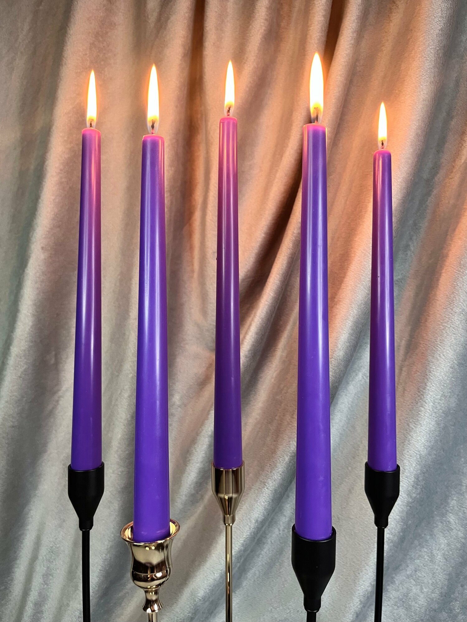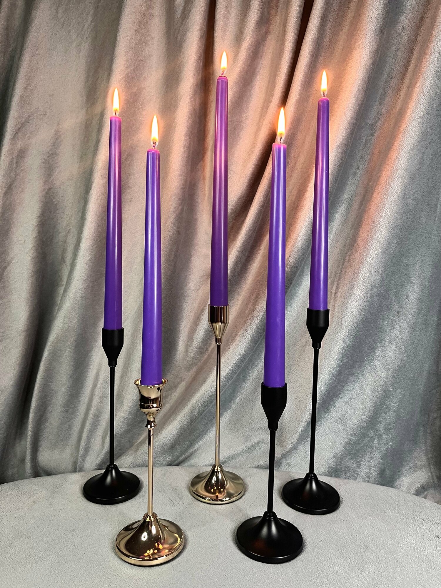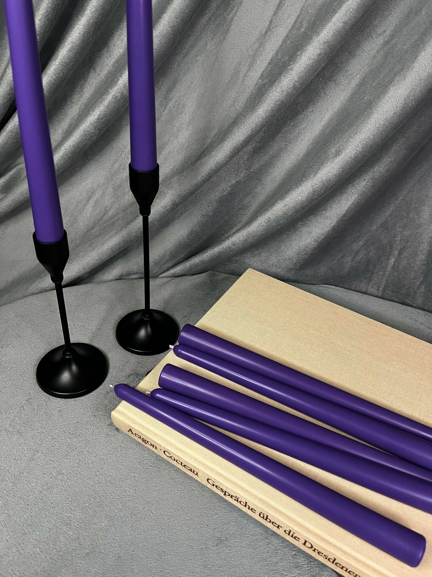 Купить Набор конических свечей "Friday" (25.5x2.2 см, 3 шт.) ручной работы. Декоративные свечи фиолетового цвета.