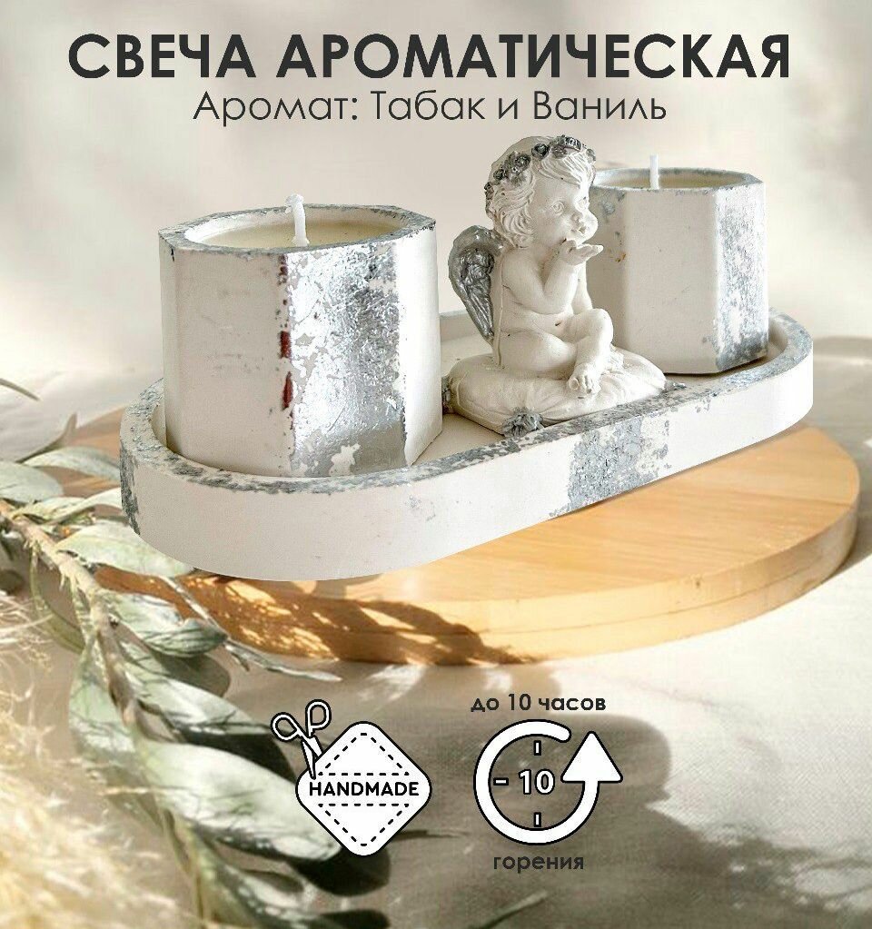 Свечи ароматические в подсвечниках с ангелом (табак и ваниль) подарок на новый год