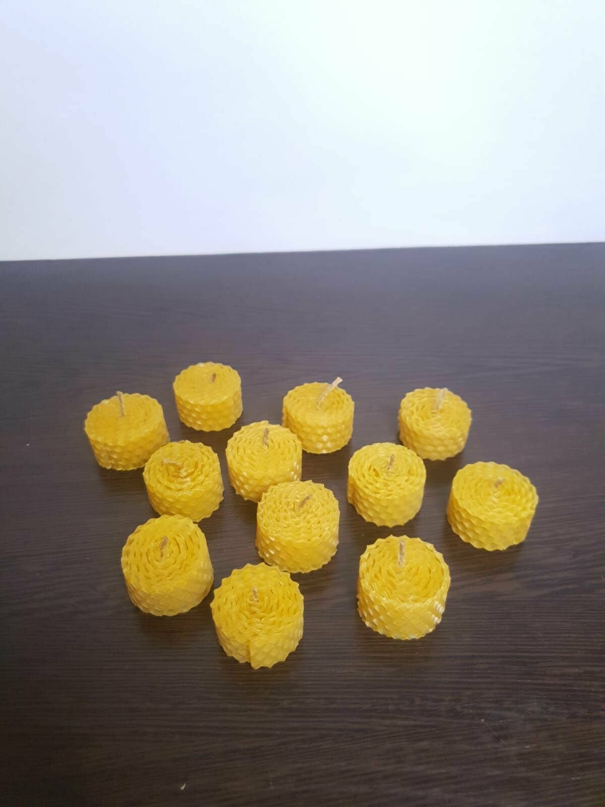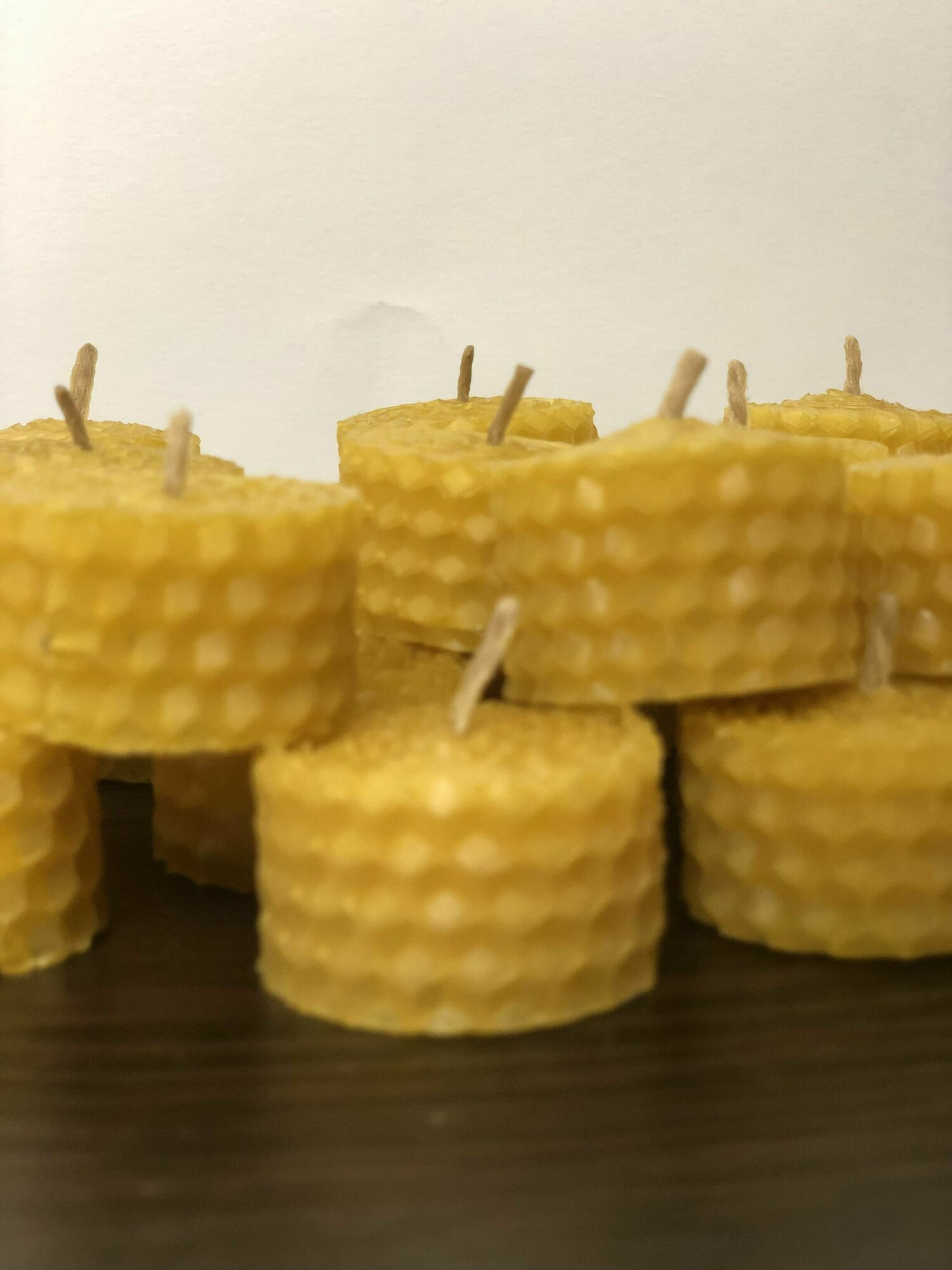 Купить Набор (чайные) свечей из вощины маленькие свечи, медовые,натуральный пчелиный воск,праздничный набор,на подарок, 12 шт