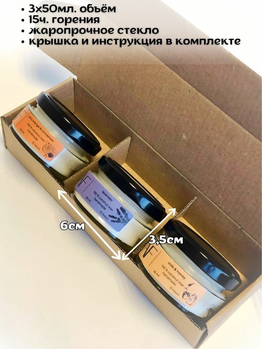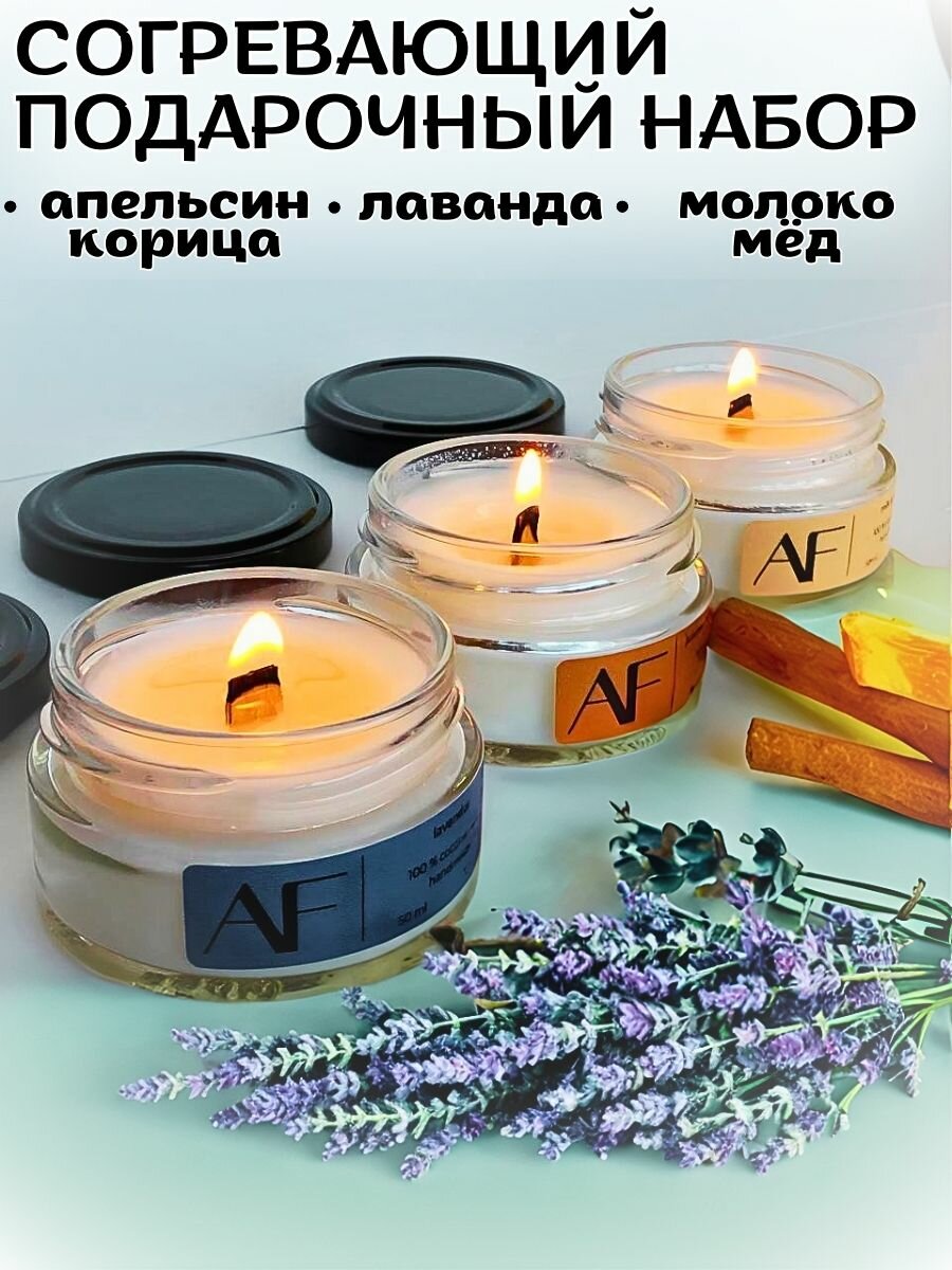 СохранитьСвечи "ART FEEL" - набор из 3-х свечей с ароматом лаванды, молока и меда, апельсина и корицы интересное: