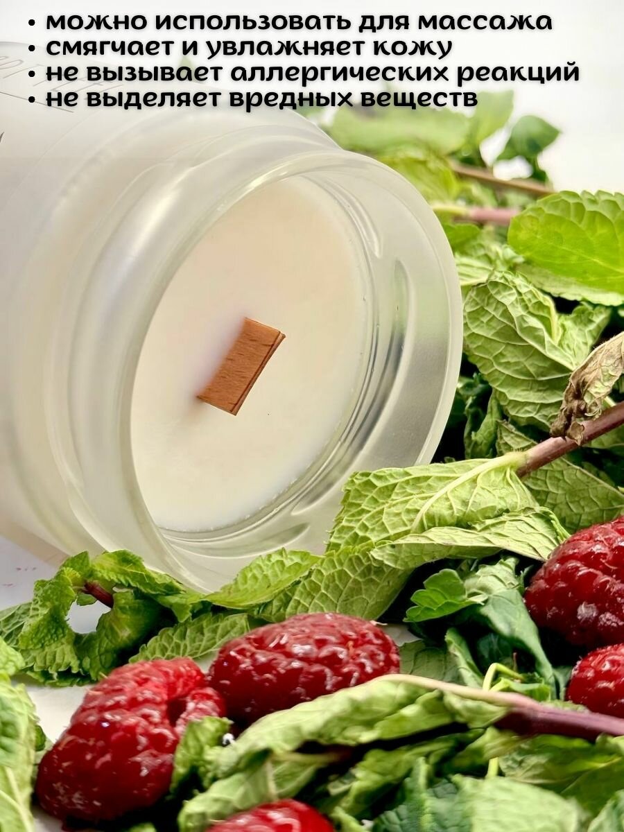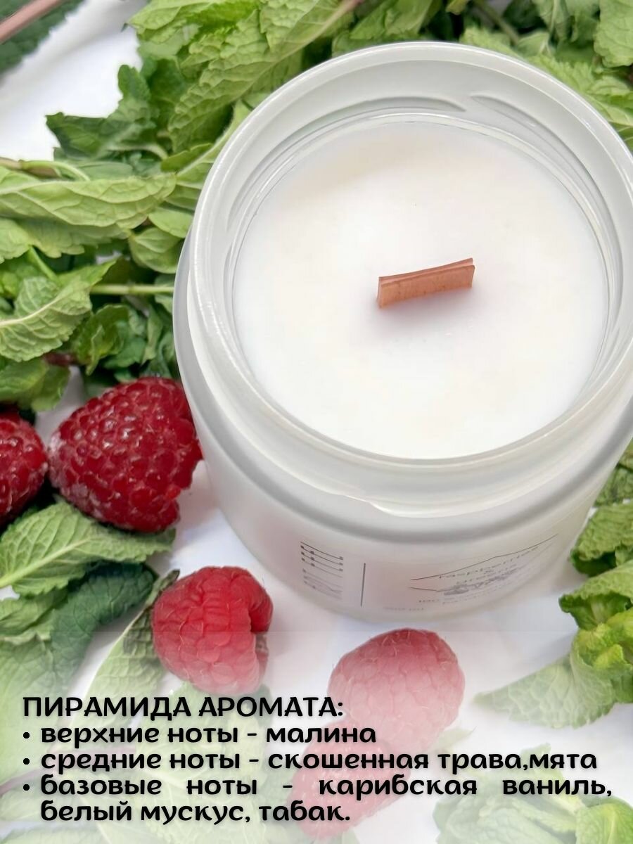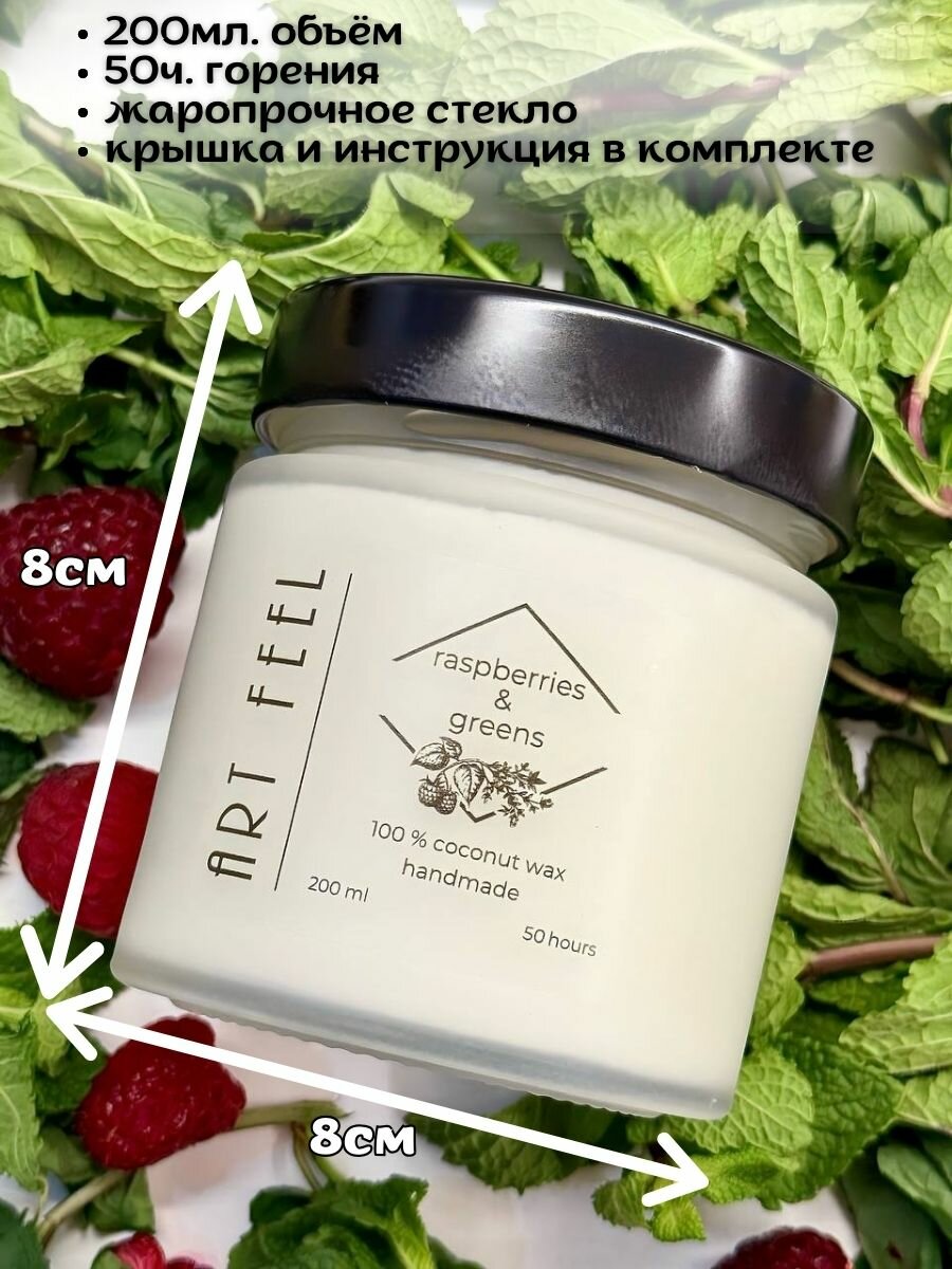 Ароматизированная свеча ART FEEL с запахом малина И зелень / Двойной деревянный фитиль с треском /100мл / 25ч горения / Ручная работа / Handmade