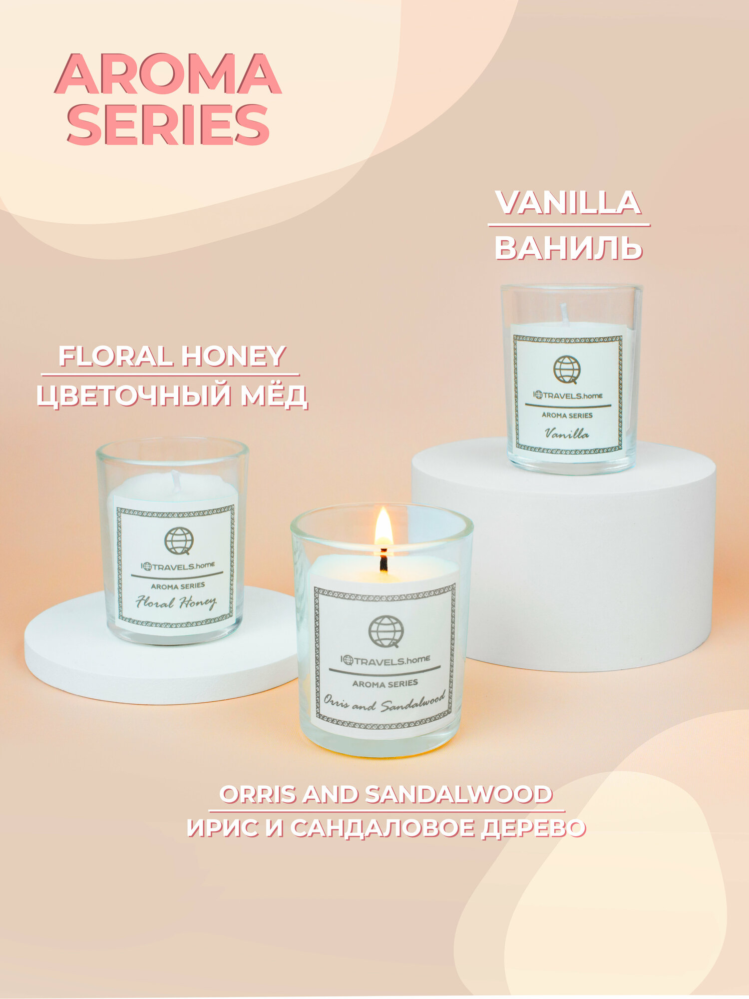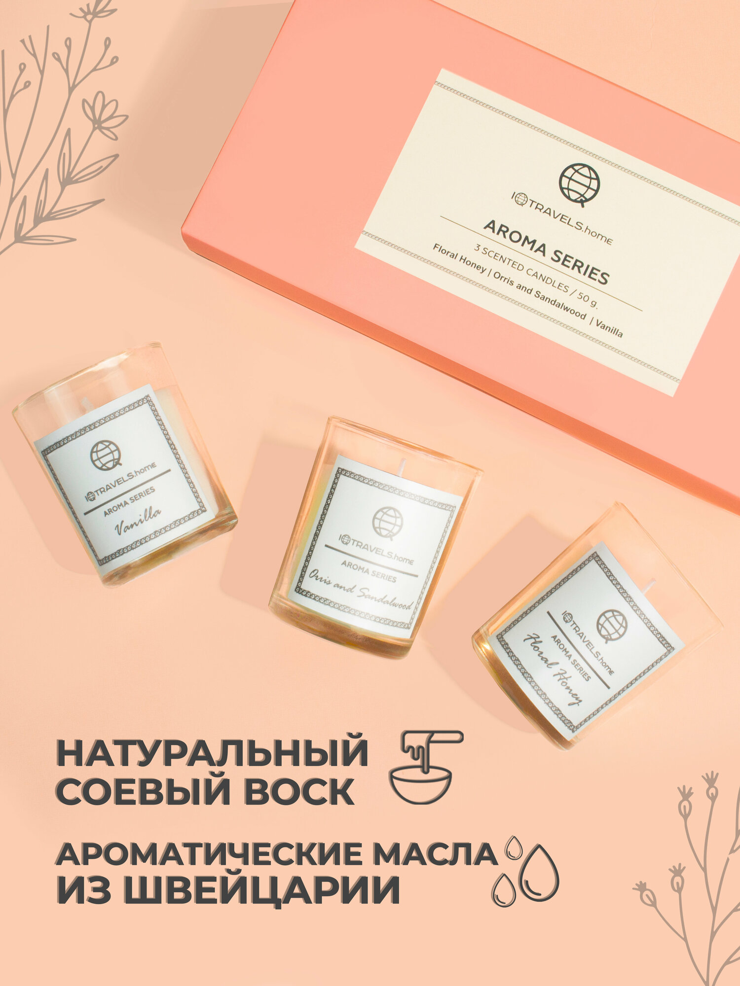 Набор ароматических свечей IQTRAVELS - Фруктовая серия (Грейпфрут, Маракуйя, Белый Персик)