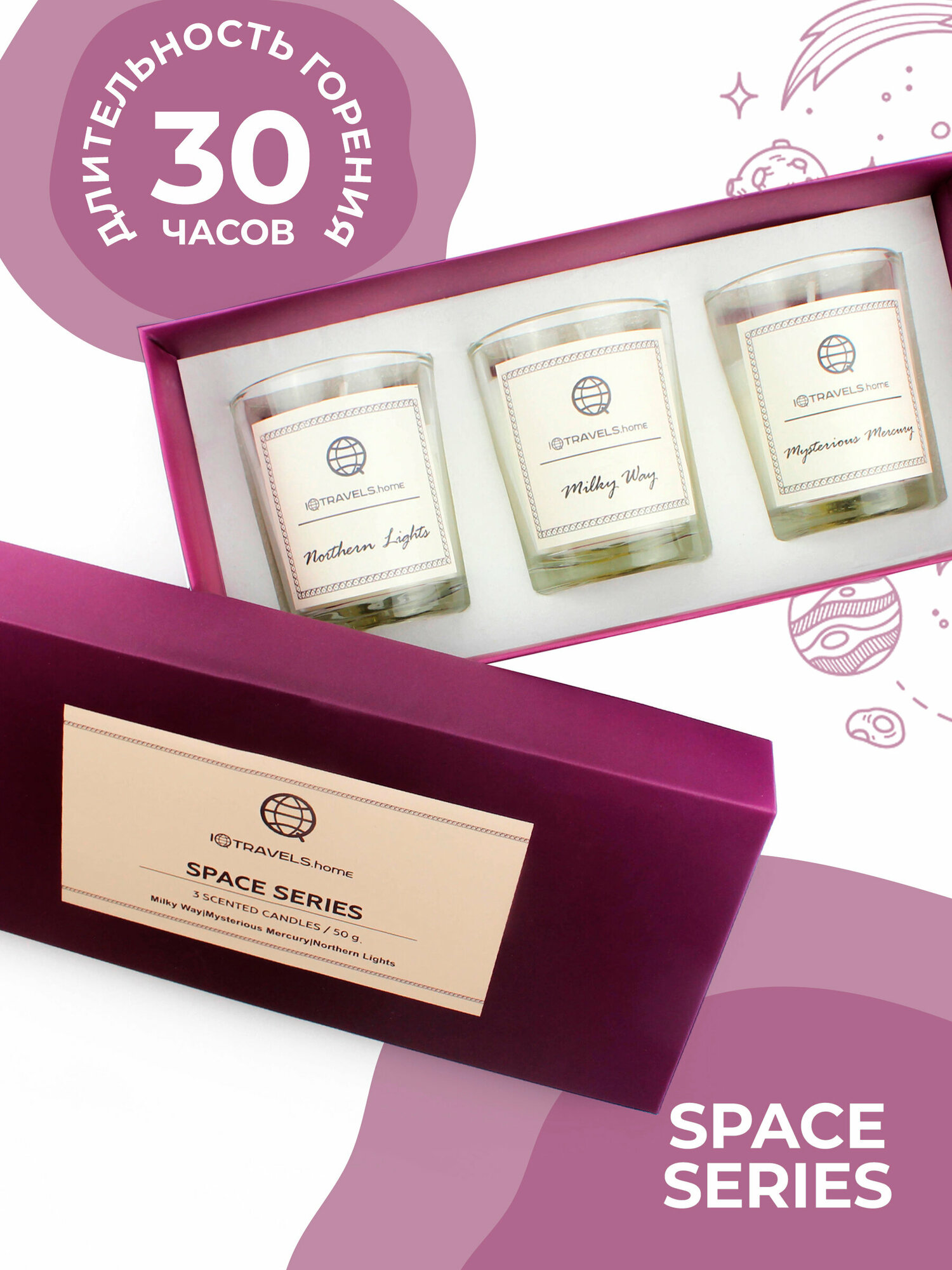 Купить Название - Набор свечей ароматических для дома - Космическая серия (Млечный путь, Загадочный Меркурий, Северное сияние)