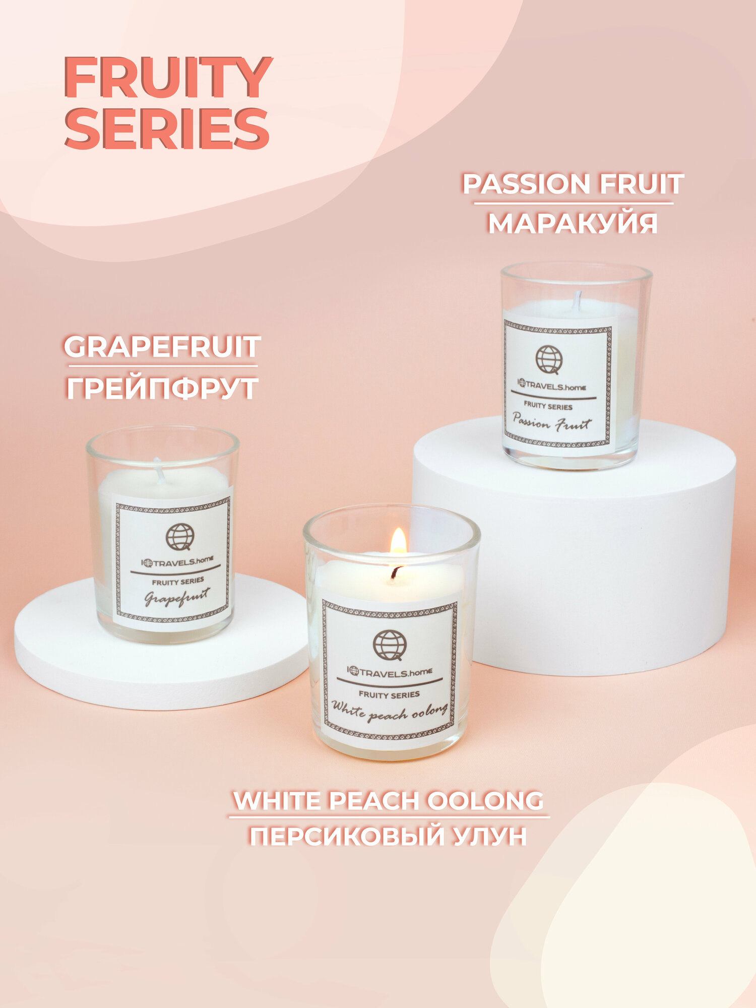 СохранитьНабор ароматических свечей IQTRAVELS - Фруктовая серия (Грейпфрут, Маракуйя, Белый Персик) интересное: