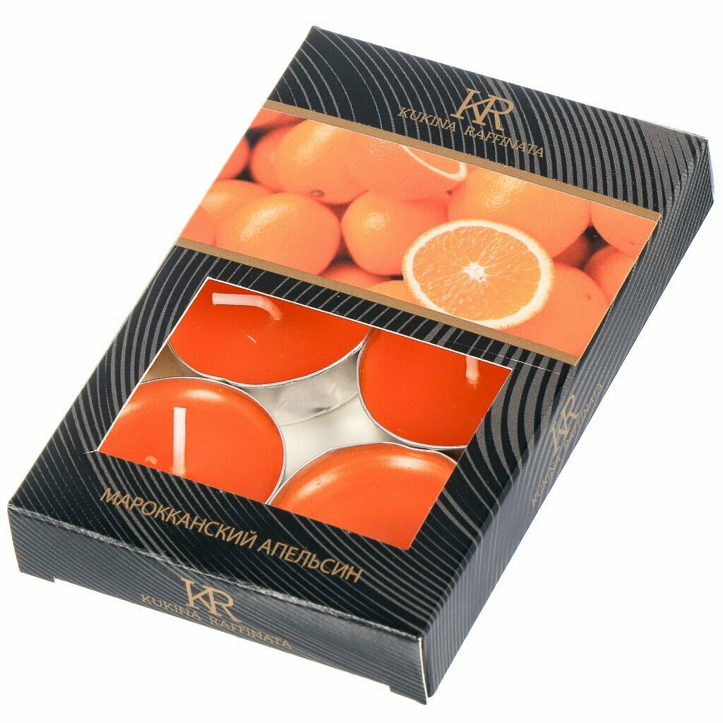 Свечи чайные ароматические "Апельсин" 6 шт горение 4 часа, размер 1 шт 3,75*3,75*1,14 см, цвет - оранжевый
