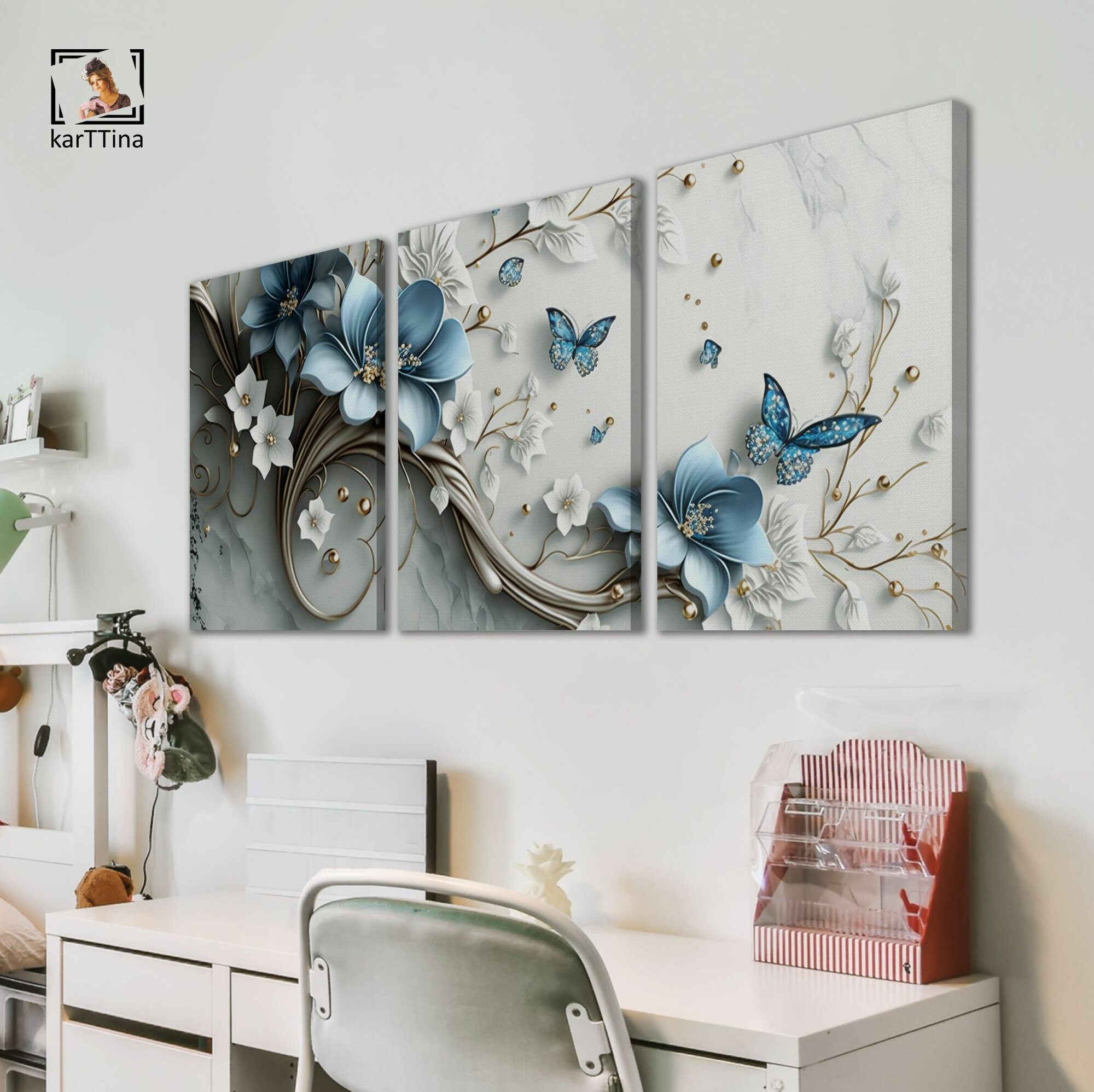 Купить Картина модульная karTTina "белые ювелирные цветы", 150 см х 70 см