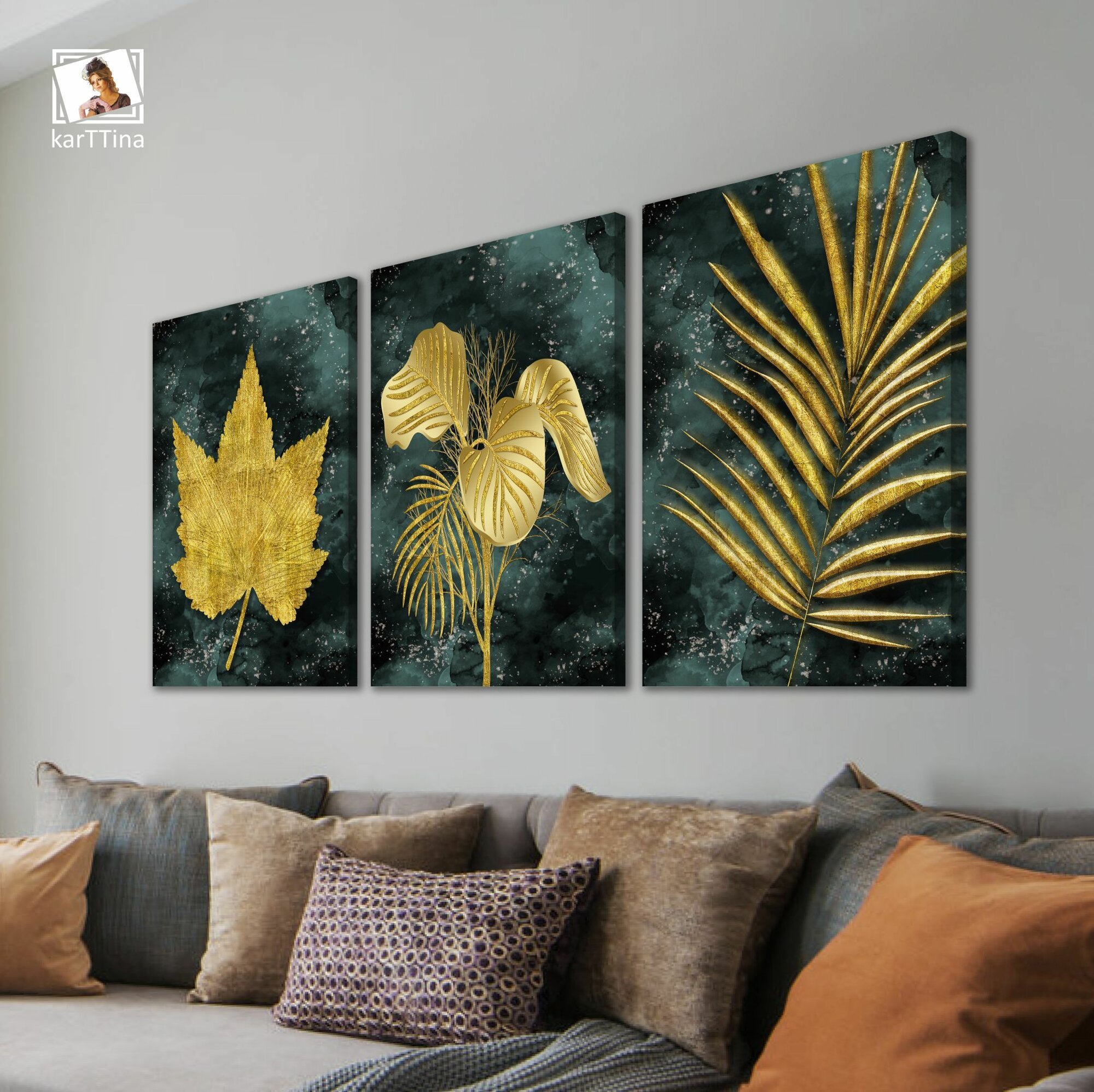 Картина модульная karTTina "золотые И синие листья" 150 см х 70 см