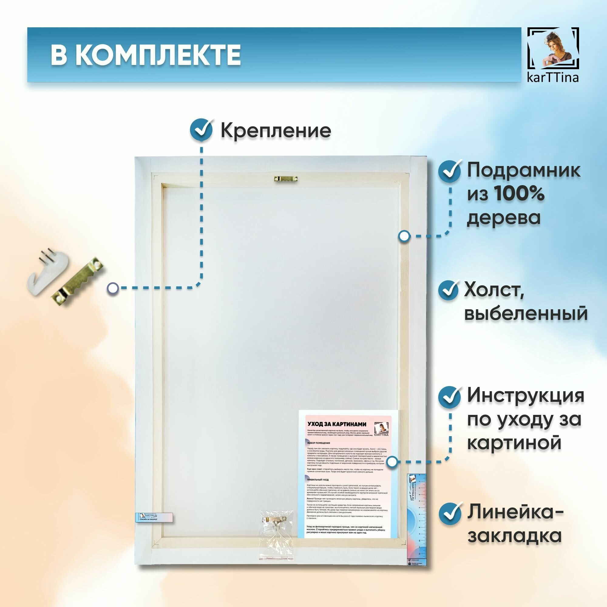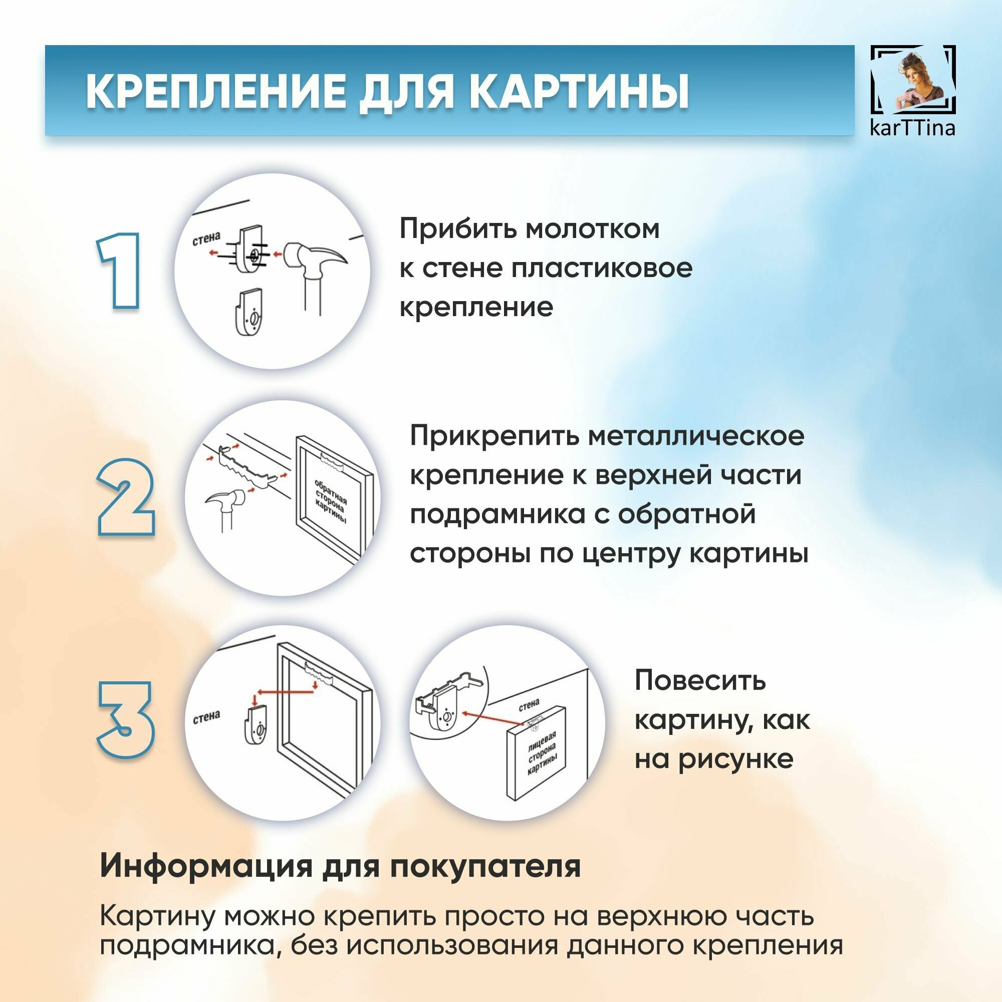| Комплектация | Картина 50х70см 1 шт.; Инструкция 1 шт.; Крепление 1 шт.; Линейка-закладка 1 шт. |