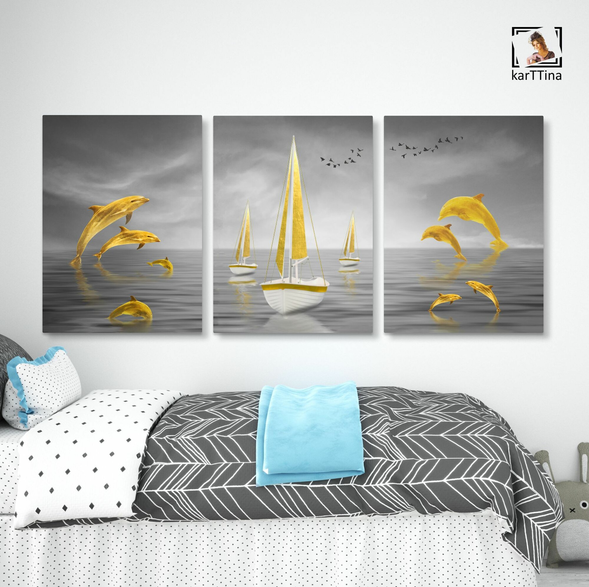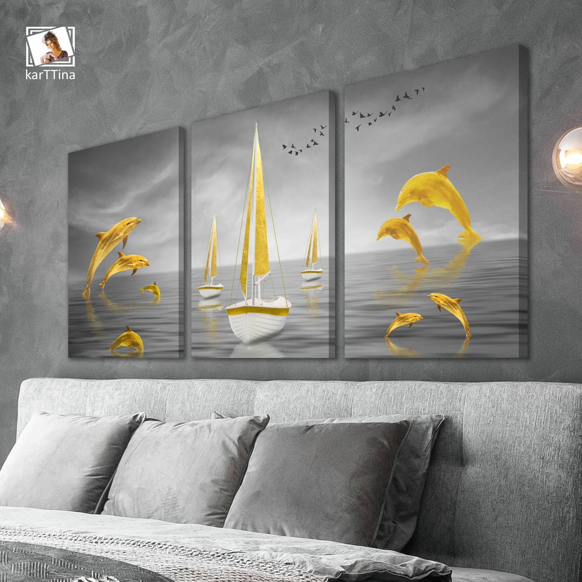 Купить Картина модульная karTTina "золотые паруса И дельфины", 150 см х 70 см