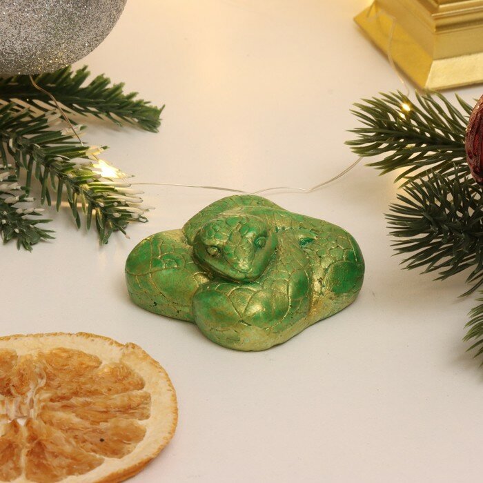 Купить Фигура "Змея клубочком" зеленый с позолотой, 5х5х2,5см