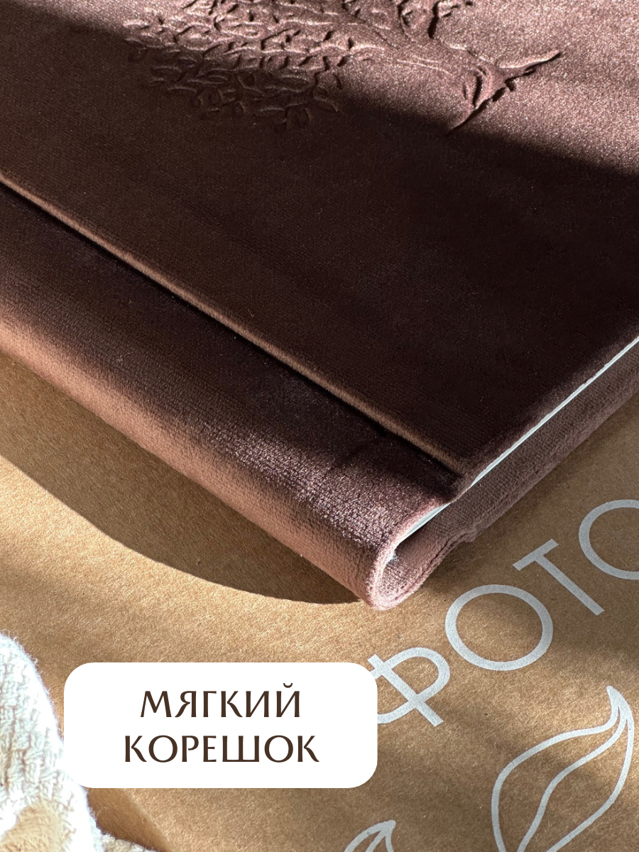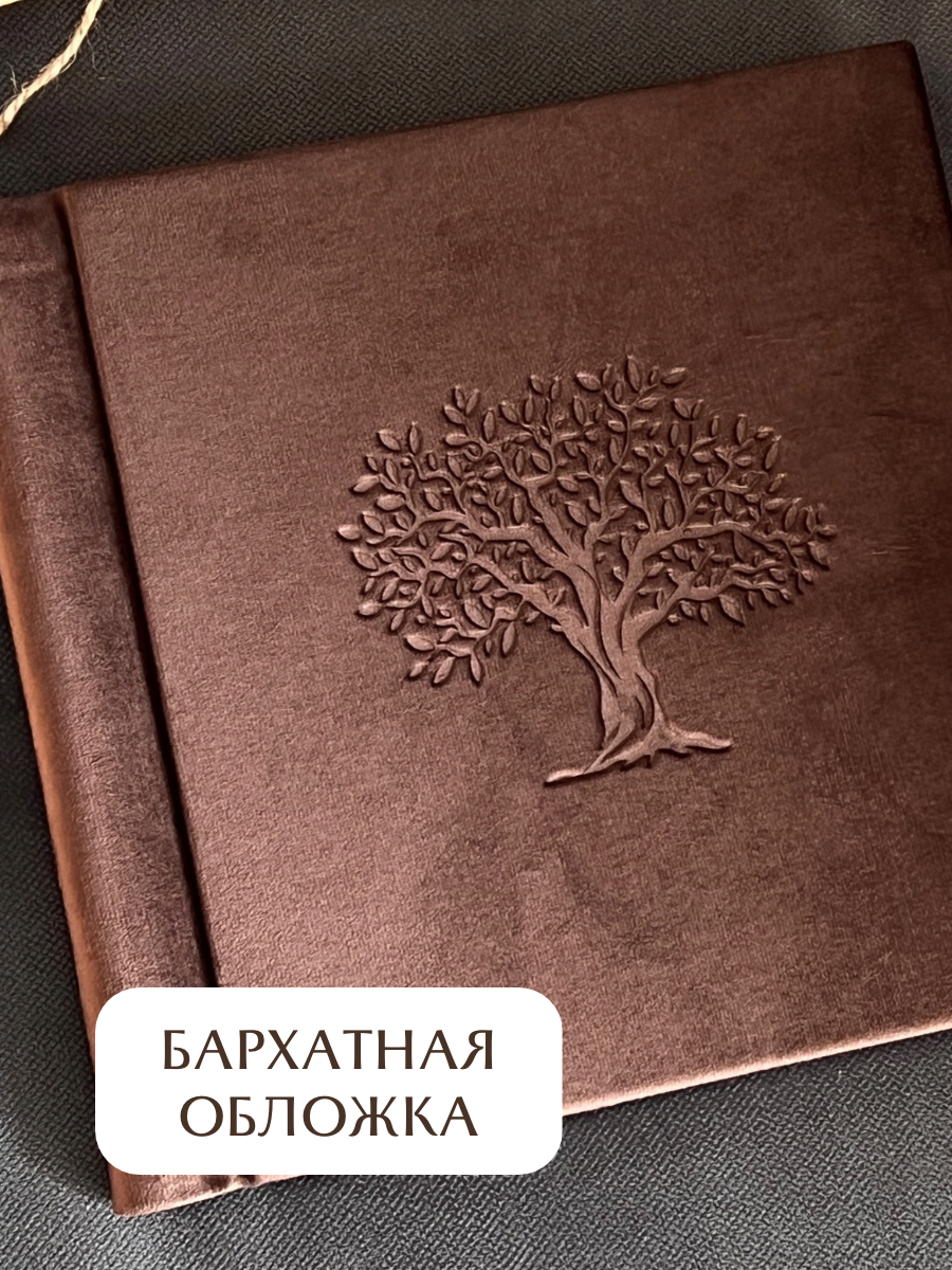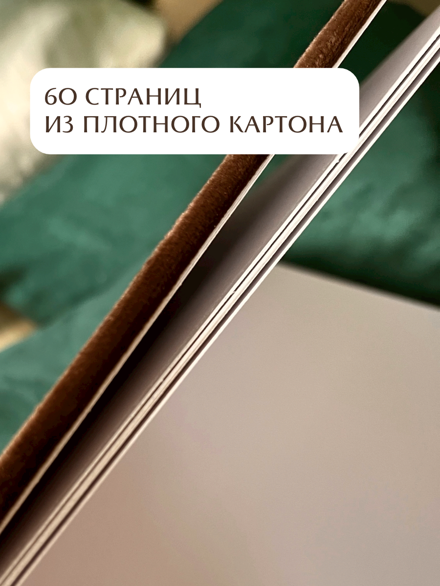 Альбом для фото/ Семейный фотоальбом для разноформатных фотографий с чистыми листами/ домашний фотоальбом 24х24 см на 60 страниц, коричневый, Велюр интересное: