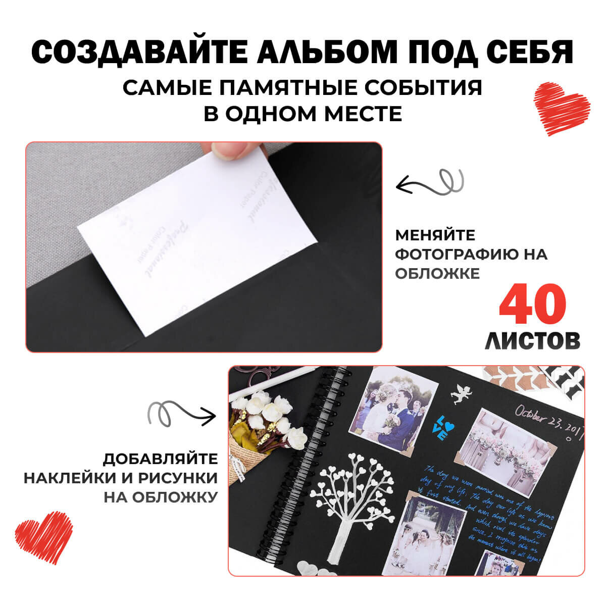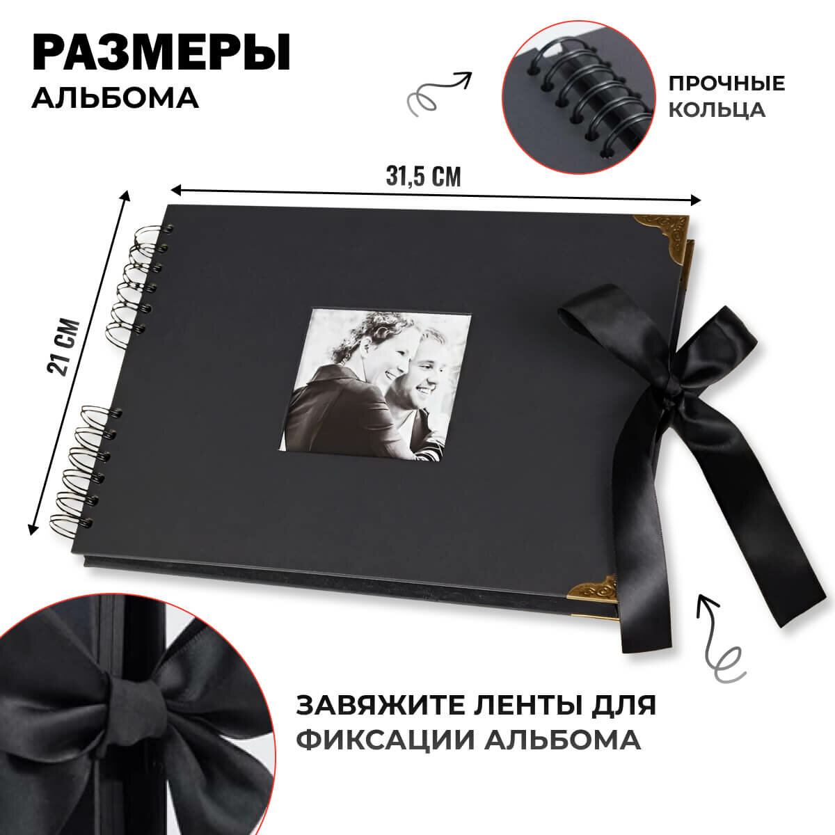 Альбом для фото с набором для оформления/ Семейный фотоальбом с чистыми черными листами 21х31,5 см на 40 листов интересное: