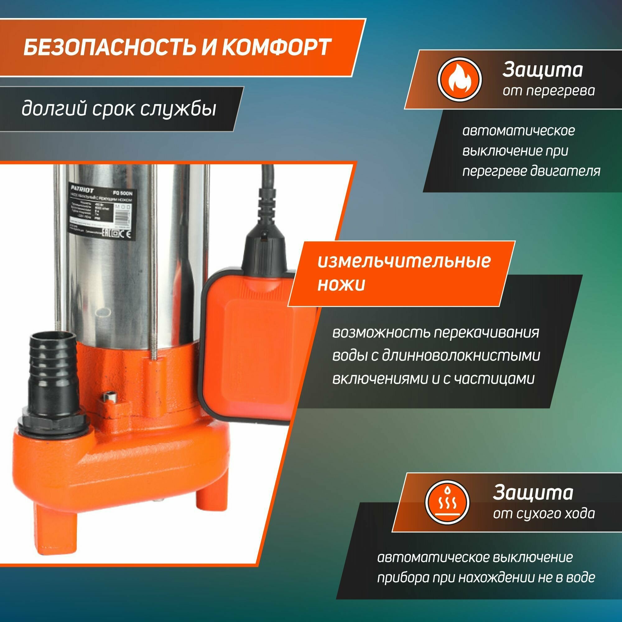 Насос фекальный PATRIOT FQ500 N, С ножом для грязной воды