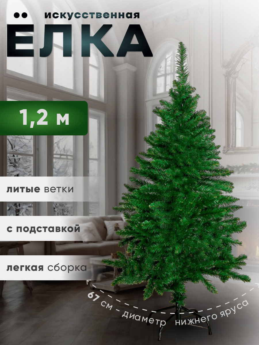 Купить Ёлка зауженная 120 см. d нижнего яруса 67 см. 210 веток. металл подставка 701427