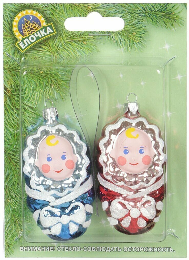 Елочка Набор елочных игрушек Малютки 7 см, 2 шт, стекло, подвеска С 1155 интересное: