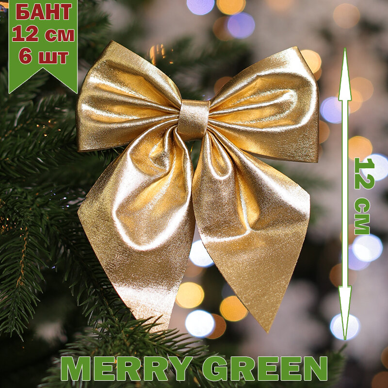 Бант на елку 12см, 6 шт, цвет золото, MG интересное: