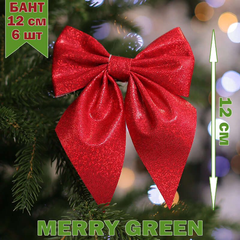 Бант на елку 12см, 6 шт, цвет красный, MG интересное: