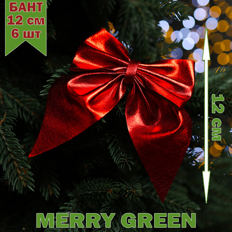 Бант на елку 12см, 6 шт, цвет красный, MG