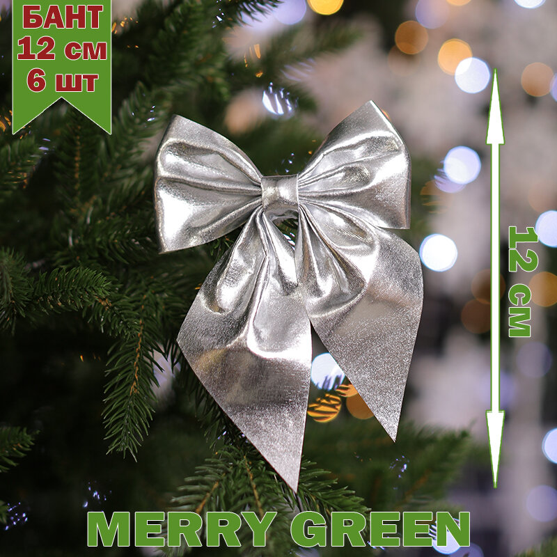 Бант на елку 12см, 6 шт, цвет серебро, MG интересное: