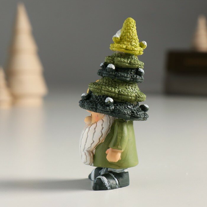 Сувенир полистоун "Гном в колпаке-ёлке с фонариком/звездой" зелёный микс 4,5х4х9 см 9488429 интересное: